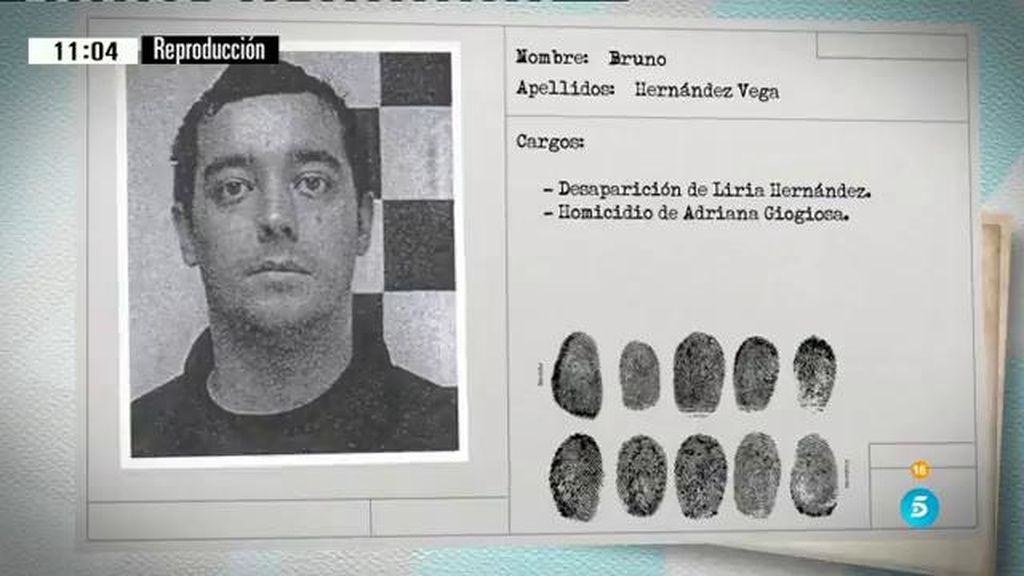 Este es el rostro de Bruno Hernández Vega, concretamente la fotografía de su ficha policial a la que ha tenido acceso en exclusiva 'El programa de Ana Rosa'. El presunto asesino de Adriana Giogiosa y Liria Hernández, era definido por sus vecinos como un hobre "problemático, raro y siniestro". Si bien la guardia civil habla de dos cargos de homicidio el juez no está de acuerdo y conforme a las pruebas aportadas, en su ficha policial sólo se le imputa un homicidio, el de Giogiosa, pues se considera que el estado de su tía Liria es de "persona desaparecida", no está oficialmente muerta.