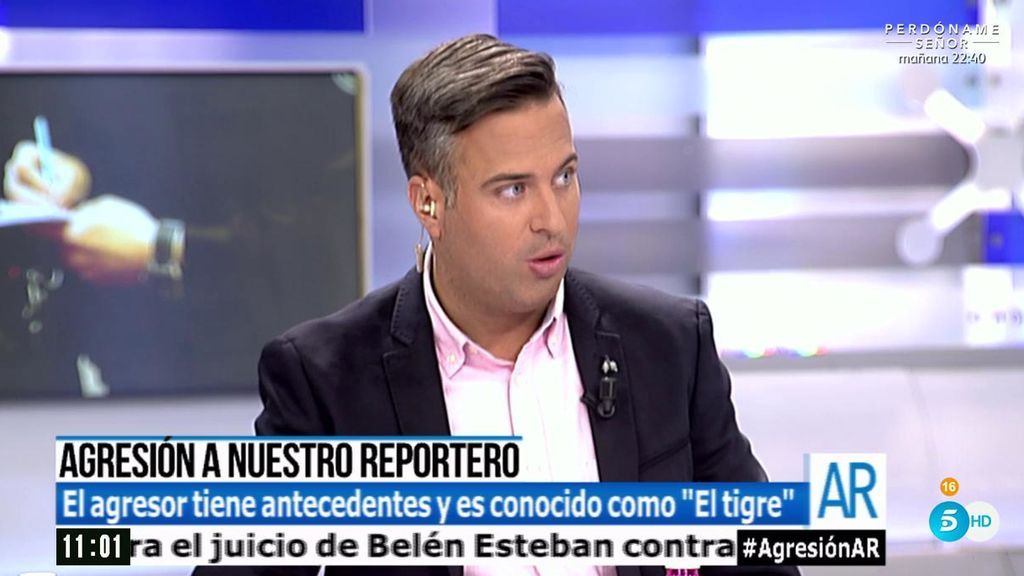"El agresor tiene antecedentes por maltrato a su mujer, ha amenazado a muchos vecinos de esa calle... es una persona muy violenta", explica Álex Rodríguez, que tras presentar denuncia a la policía por la agresión que sufrieron durante un directo en 'El programa de AR' en la madrileña calle Topete ha podido saber que el hombre se llama Juan, alias 'El Tigre'. "Se sabe quién es, lo tienen identificado, pero por el momento no lo han detenido, sigue en el barrio y mi mayor miedo es la vecina que nos atendió ayer y que vive al principio de esa calle", advierte nuestro reportero.