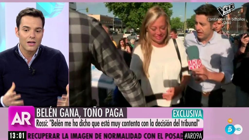 Antonio Rossi ya ha podido hablar con Belén Esteban tras la decisión definitiva del tribunal que condena a Toño Sanchís a pagarle hasta 600.000 euros además de las costas que ha generado el recurso que interpuso el ex representante. Belén le ha dicho a Rossi que está "muy contenta" y que "¡Ha ganado!".