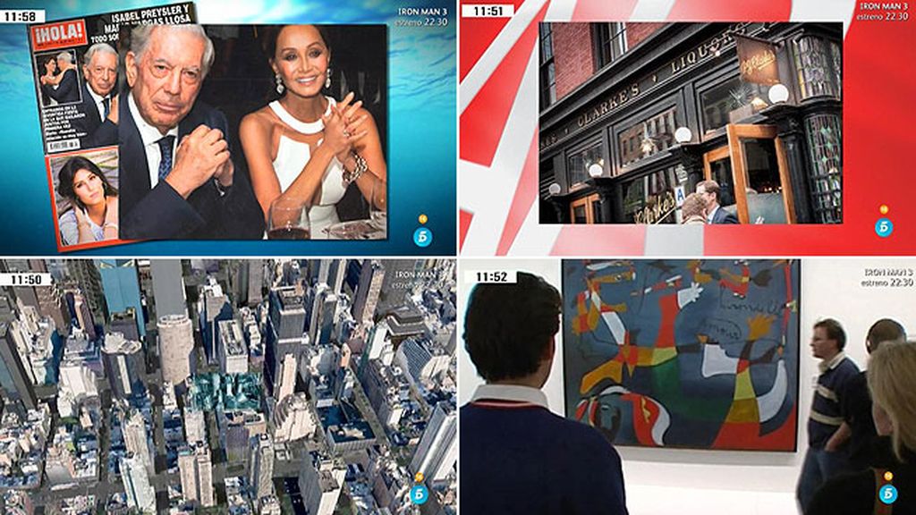 Nada más llegar a Nueva York, Isabel Preysler y Mario Vargas Llosa fueron a su hotel y de ahí al conocido restaurante P.J. Clarke's, en el que pudieron degustar unas hamburguesas, ensaladas o fish and chips. Tras comer, la pareja fue al MOMA y de ahí al cine.