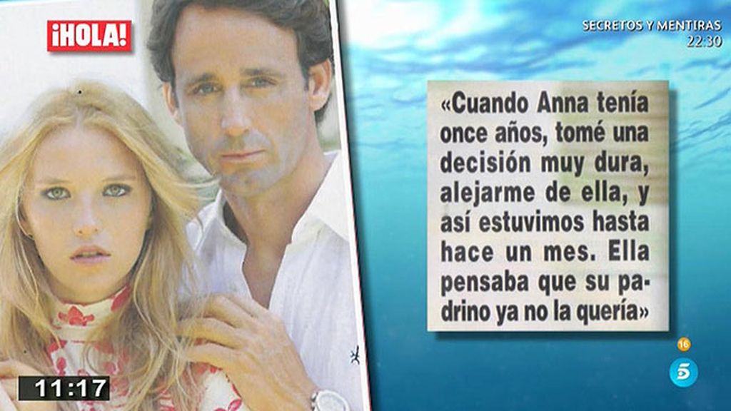 Una semana después de que la revista 'Hola' hiciera pública la existencia de Anna, la hija secreta de Álvaro Muñoz Escassi, el jinete se sincera con la revista y revela toda la verdad sobre esta sorprendente paternidad. "Hace 15 años hicimos las pruebas de paternidad, pero como Anna tenía una familia, decidimos callarnos", dice el jinete, que mantuvo una relación con Anna hasta los 11 años. "Cuando Anna tenía once años tomé una decisión muy dura, alejarme de ella."