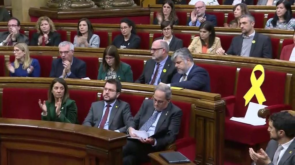 Quim Torra ya no es diputado aunque sigue siendo Presidente de la Generalitat, un presidente con voz, pero sin voto. Tras el discurso de Torra se aprecia la tensión palpable que evidencia la división del independentismo. Los diputados de Junts Per Catalunya se levantan y aplauden, mientras que los de Esquerra Republicana permanecen sentados y se niegan a aplaudir.