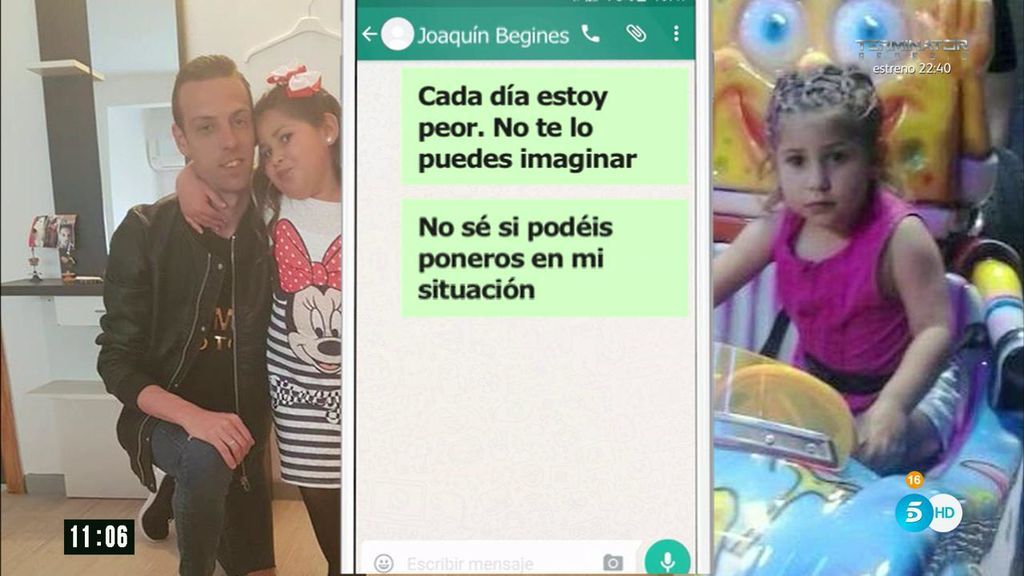 Joaquín Begines es el padre de la niña que desapreció hace nueve días en Sevilla junto a su madre y la pareja de esta. "No sé que hacer. Cada día estoy peor", cuenta. El padre relata el calvario que está pasando, pero tiene claro que no parará hasta que no la encuentre. "Sólo quiero saber si mi hija está bien", dice el padre.