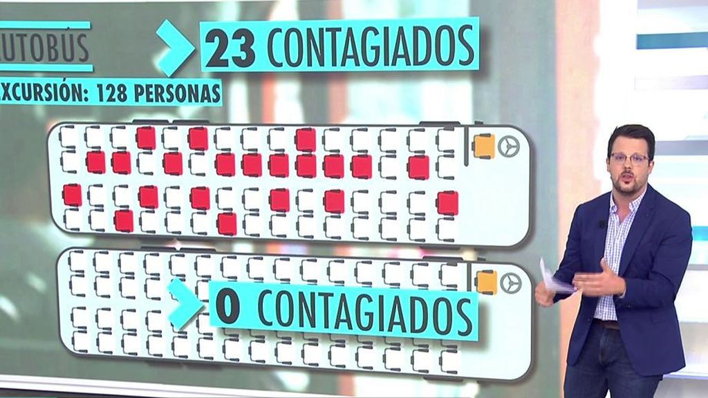 Así se propaga el coronavirus en una oficina, un restaurante y un autobús