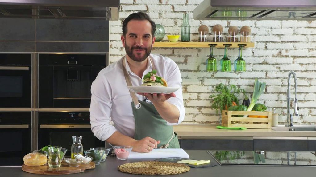 El prestigioso chef Mario Sandoval, disntinguido con dos Estrellas Michelin y tres Soles en la Guía Repsol, ha comenzado su sección en el programa enseñando una receta de una hamburguesa irresistible acompañada de queso Havarti, aros de cebolla, calabacín, espinaca, aguacate y mayonesa de sriracha.