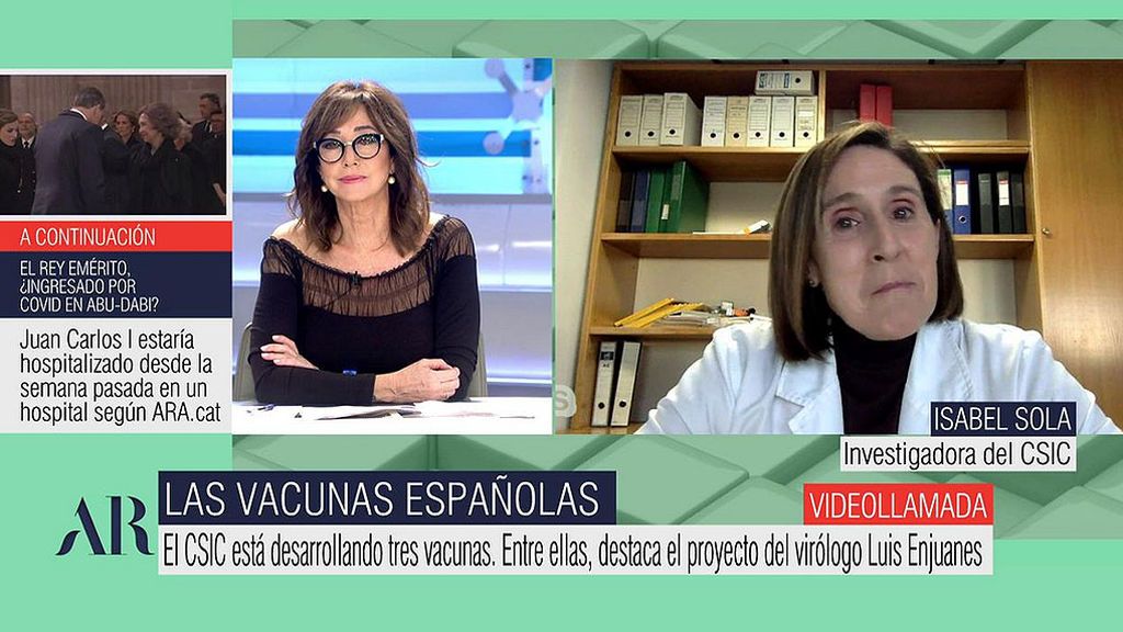 Isabel Sola, codirectora e Investigadora del equipo del prestigioso virólogo Luis Enjuanes del CSIC, ha conectado en directo con ‘El programa de Ana Rosa’ para explicarnos en qué punto está la vacuna que están desarrollando contra el coronavirus y que los expertos califican como “una de las mejores”.