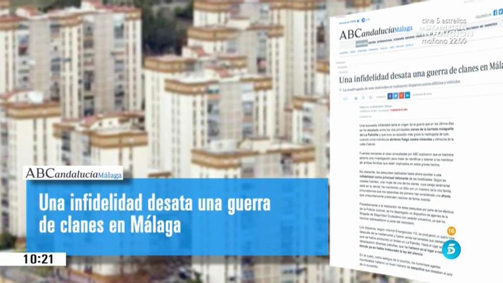 Tiroteo entre clanes gitanos en La Palmilla (Málaga). Dos familias se han enfrentado por una supuesta infidelidad. Según ha relatado nuestra compañera Rocío Romero, una de las familias acudió al barrio a tomar represalias y quince patrullas se tuvieron que personar en la zona y localizó 25 casquillos de bala. El tiroteo no produjo ningún herido de gravedad, solo dos personas tuvieron que ser atendidas por los sanitarios.