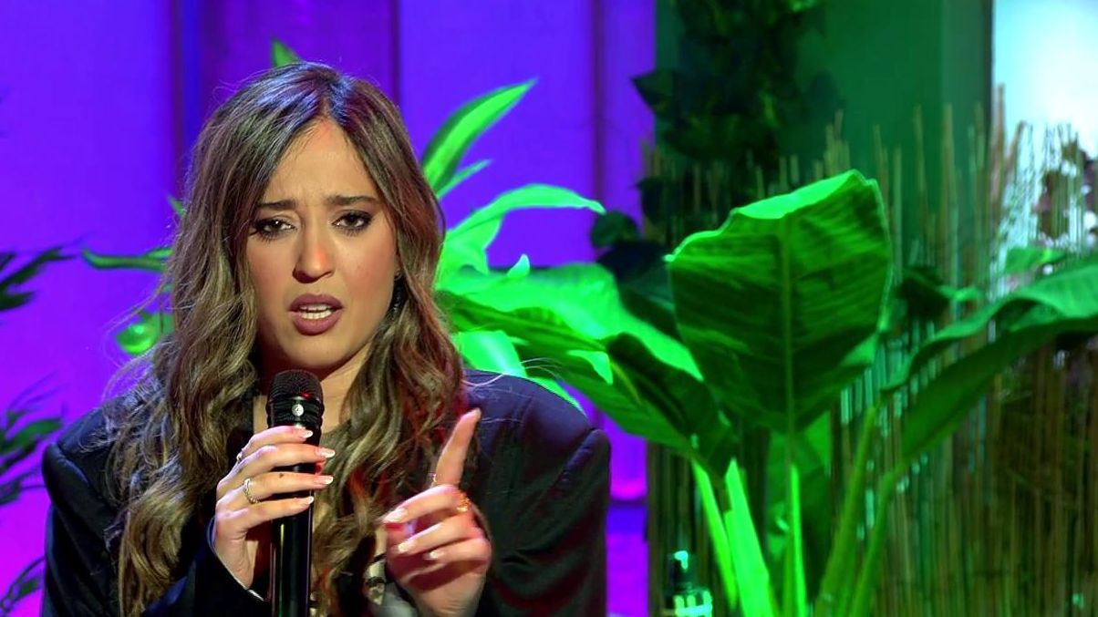La reportera se ha preparado y ha sorprendido a todos cantando en el plató y presentando durante el directo su próximo tema: "Os voy a cantar una canción que se llama 'La vencida', os la presento aquí en exclusiva, antes de que se lance el próximo viernes".