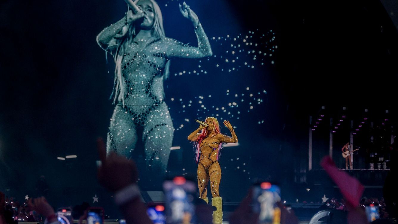 El estadio Santiago Bernabéu se ha rendido al talento de la bichota. El campo de Real Madrid ha sido el escenario perfecto para el inicio de la serie de conciertos que la colombiana va a dar en la ciudad. Karol G, la cantante internacional que ha revolucionado a toda una generación, ha protagonizado un concierto que ya ha pasado a la historia por la gran expectación que había en torno a él y por la cantidad de vips que ha logrado reunir.