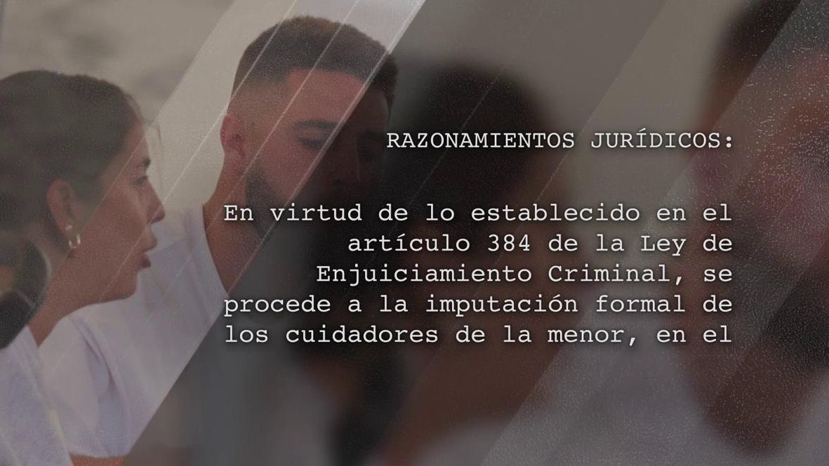 En virtud de lo establecido en el artículo 384 de la Ley de Enjuiciamiento Criminal, se procede a la imputación formal de los cuidadores de la menor, en el momento de los hechos y presuntos responsables de las lesiones.