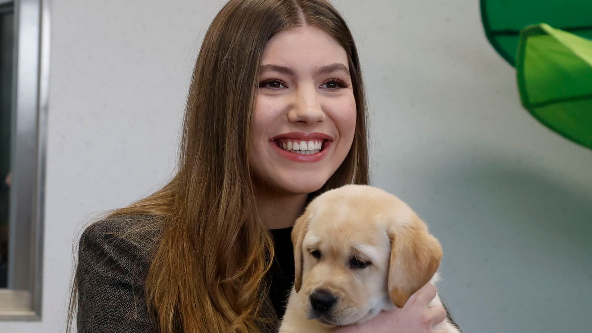 La infanta también ha conocido a Ona, uno de los cachorros del centro al que le ha puesto el nombre, y que en 24 meses mejorará la vida de una persona ciega.