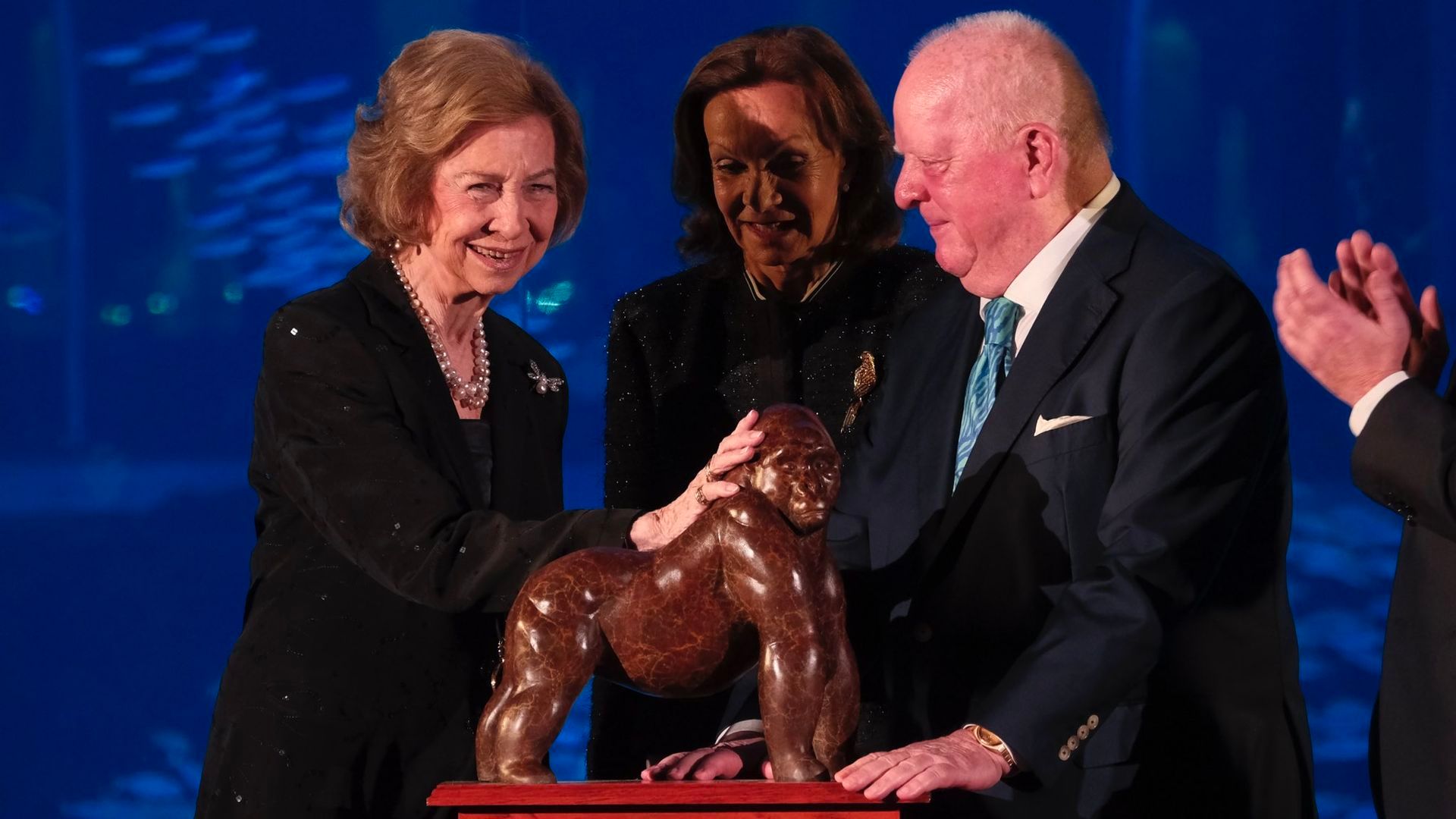 La reina Sofía ha recibido este jueves en Las Palmas de Gran Canaria el Premio Gorila que concede la Fundación Loro Parque, en reconocimiento a su compromiso con la conservación de la biodiversidad, el bienestar animal y la protección del patrimonio natural.