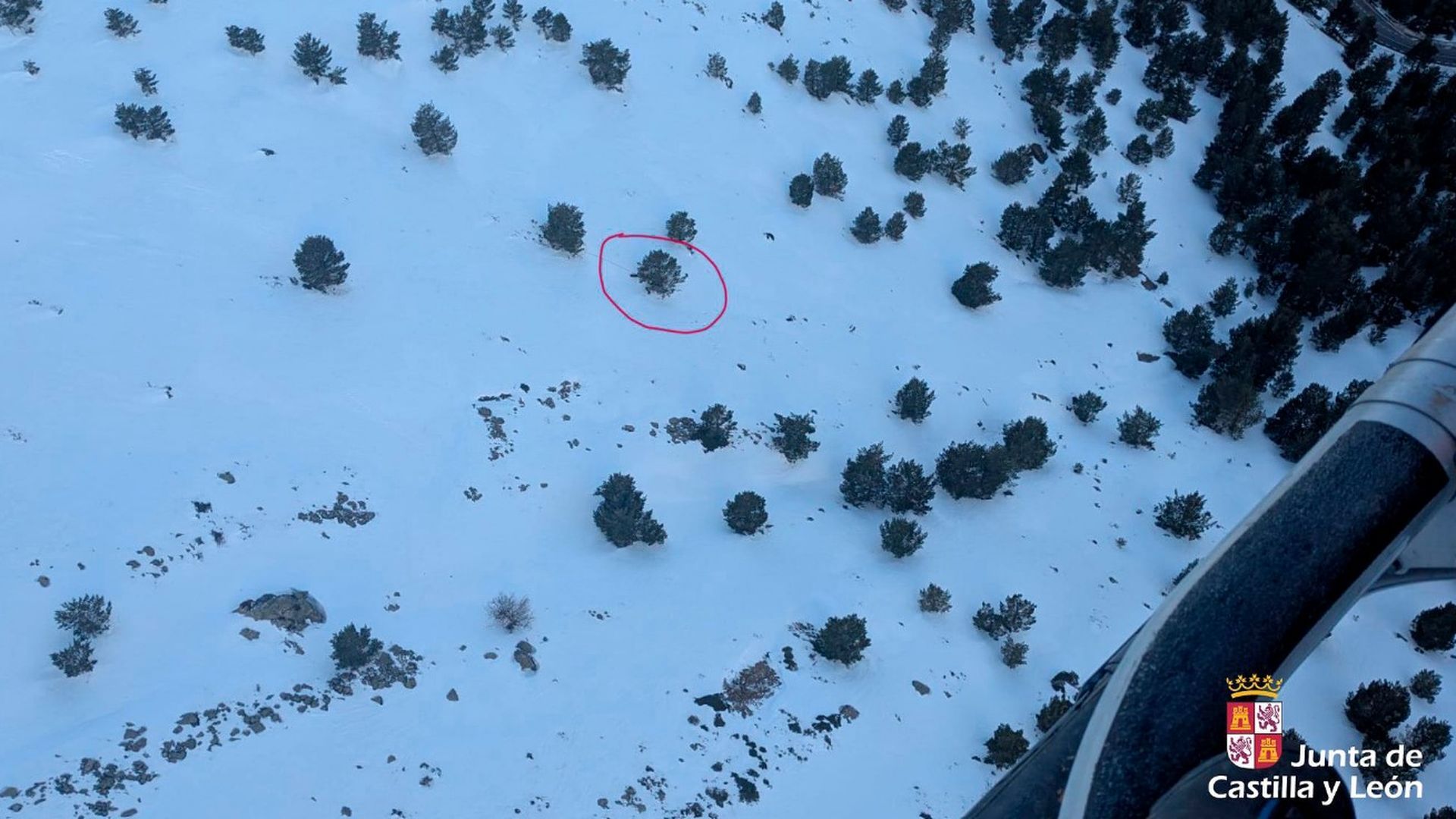Tras localizar el lugar en el que se encontraba el herido, el helicóptero ha realizado una maniobra de apoyo de patín para facilitar el descenso a tierra del equipo de rescate que finalmente ha accedido al varón.