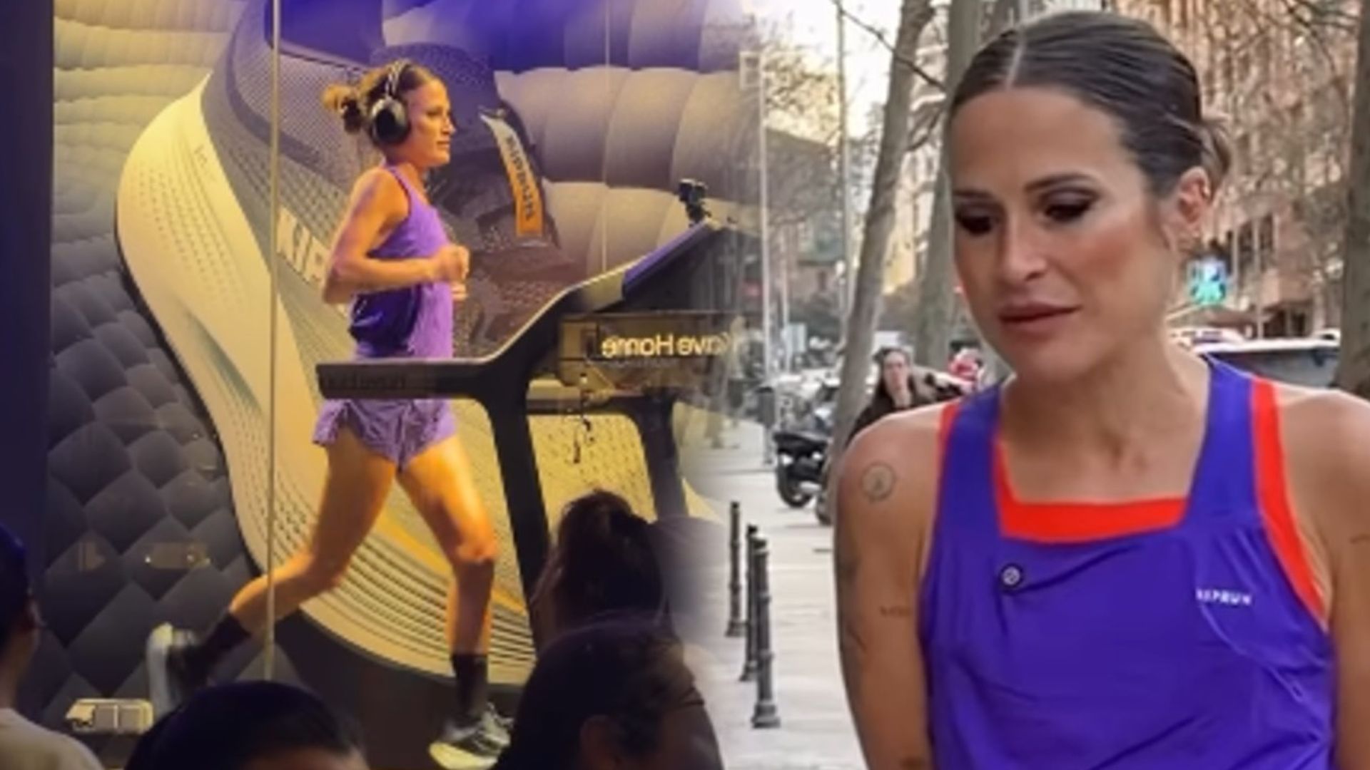 Verdeliss consigue completar el reto de correr encima de una cinta durante 24 horas seguidas: en un escaparate en Madrid