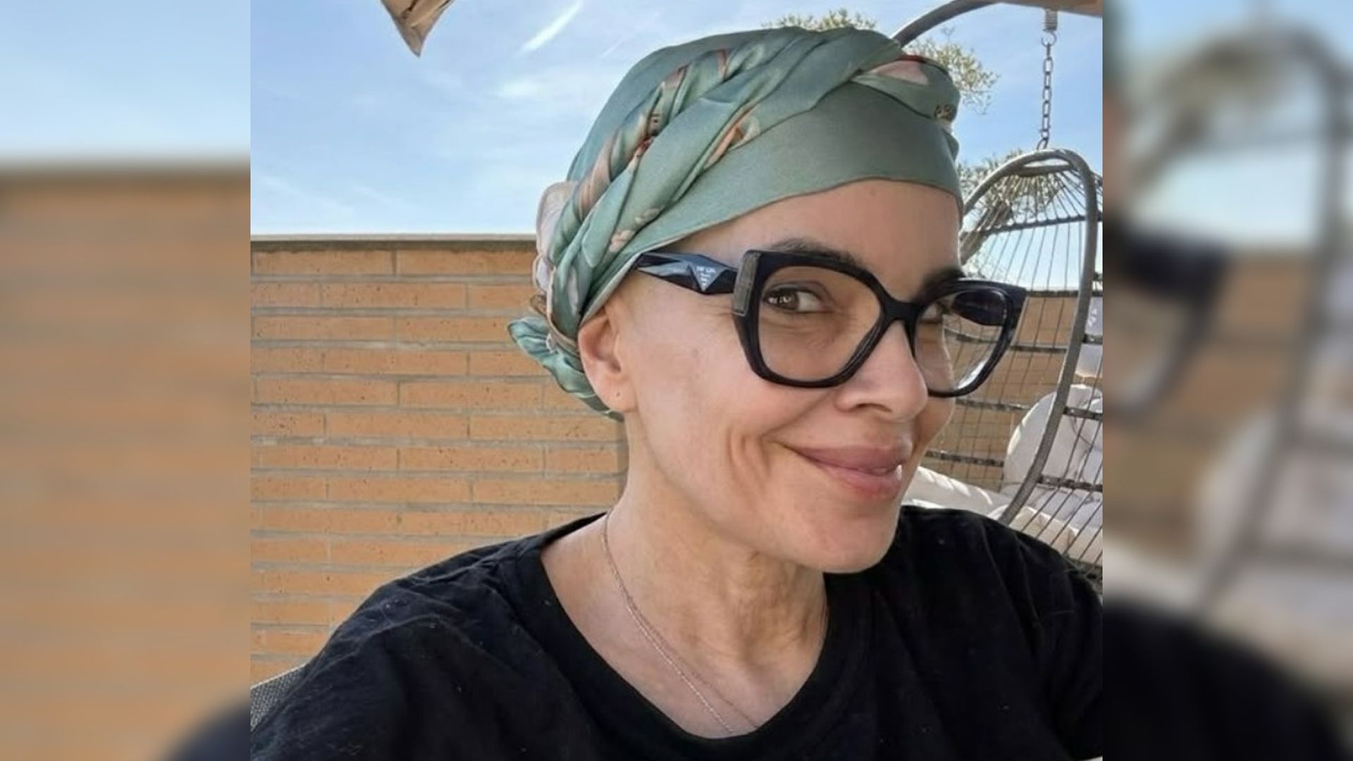 Junto a la imagen en la que se le puede ver llevando un turbante que protege su cabeza y unas gafas de ver, la presentadora ha compartido un texto en el que deja claro cuál es su estado actual y, en la que también, recalca que no padece cáncer.