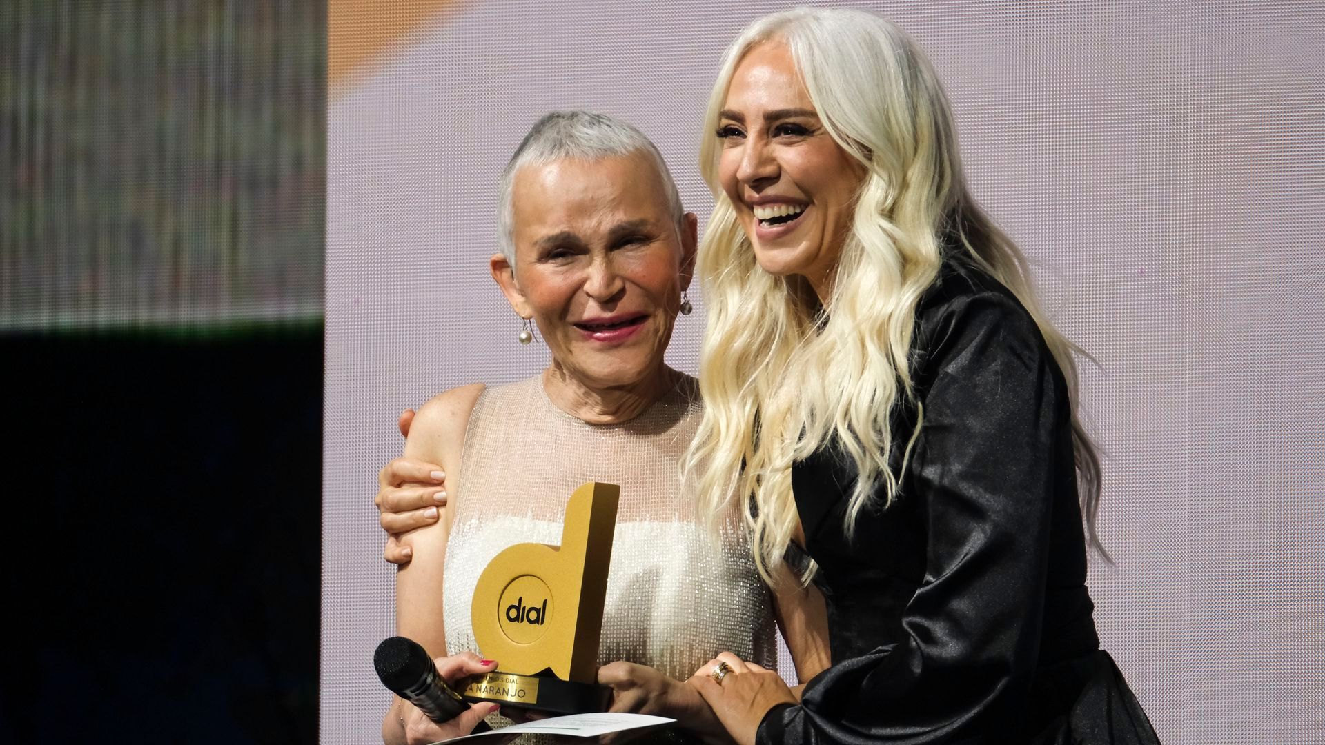 La actriz, que en diciembre anunció que su cáncer estaba en remisión, fue la encargada de entregar a la cantante el Premio Dial 2026 a Toda una Trayectoria