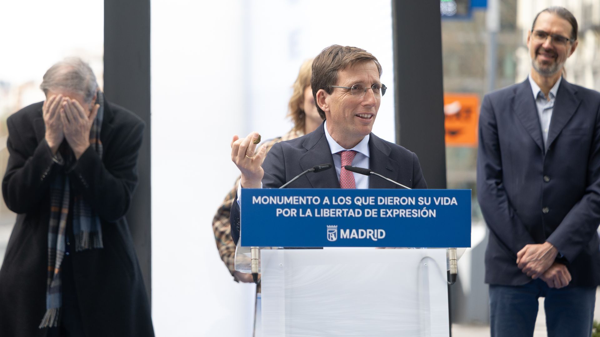 Madrid rinde homenaje a los caídos por la libertad de expresión con un monumento frente a la Asociación de la Prensa de Madrid (APM), en la calle Juan Bravo, un reconocimiento que ha sido presentado por el alcalde, José Luis Martínez-Almeida, junto a la presidenta de la APM, María Rey.