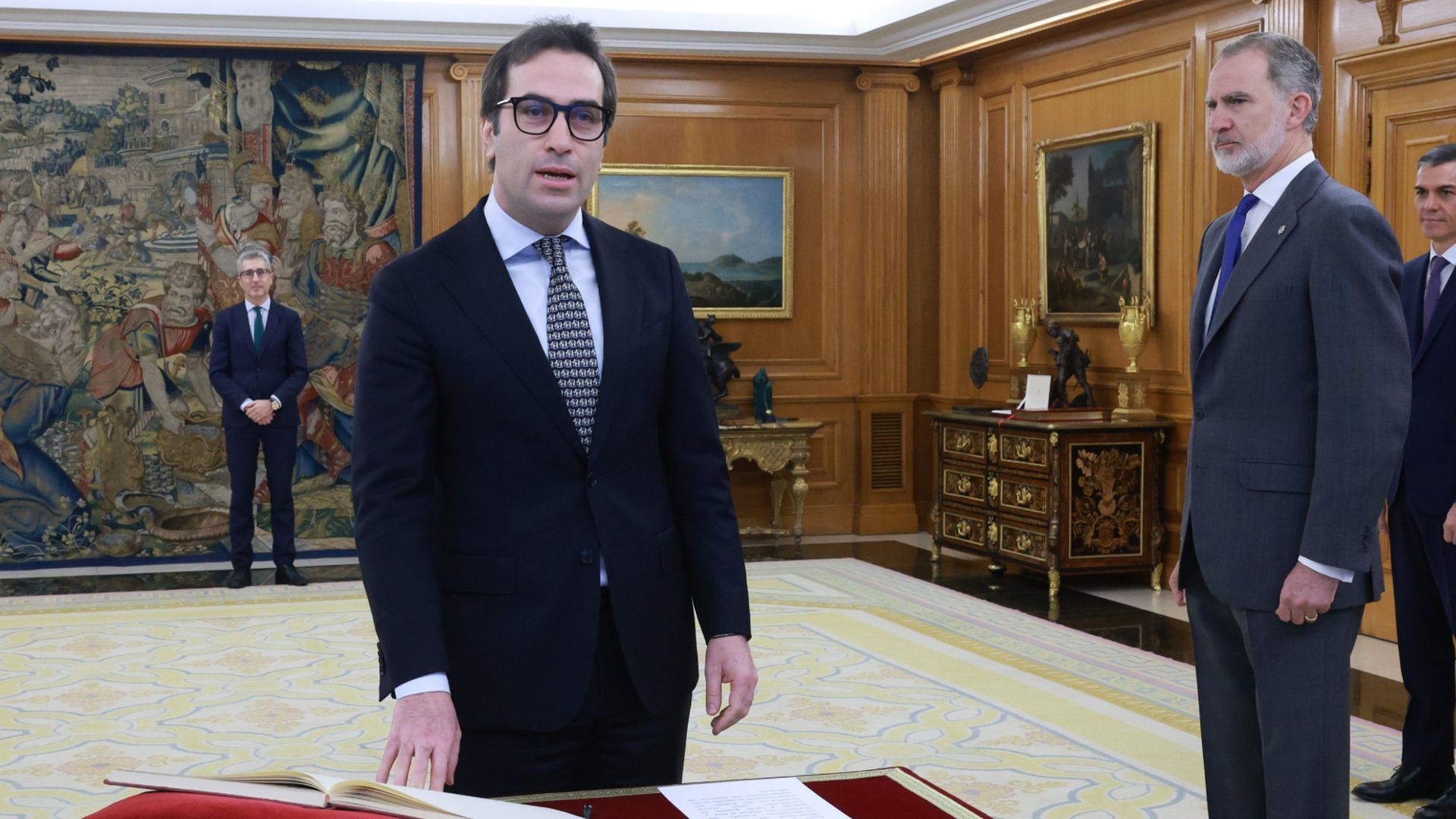 Al acto, celebrado este mismo 27 de marzo, han asistido el presidente del Gobierno, Pedro Sánchez, el ministro de Presidencia, Justicia y Relaciones con las Cortes, Félix Bolaños, como notario mayor del Reino; la presidenta del Congreso, Francina Armengol; el presidente del Senado, Pedro Rollán; el presidente del Tribunal Constitucional, Cándido Conde-Pumpido; y la directora general de Seguridad Jurídica y Fe Pública, María Esther Pérez Jerez.