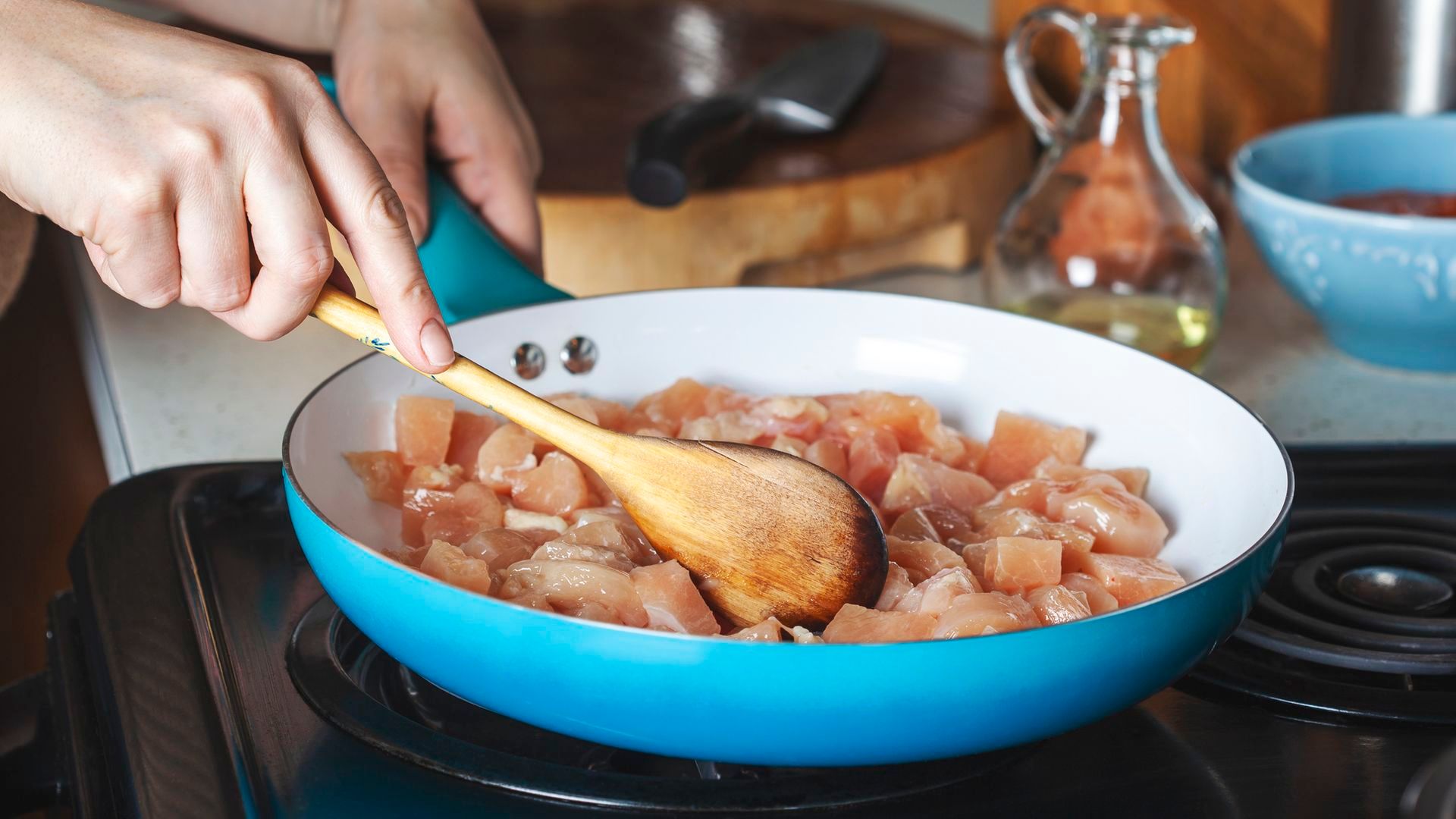 En cambio, muchas veces otros alimentos más duros, como una pechuga de pollo, también los cocinamos en sartenes antiadherentes, lo que es un error, tal y como explica el chef Guibert.