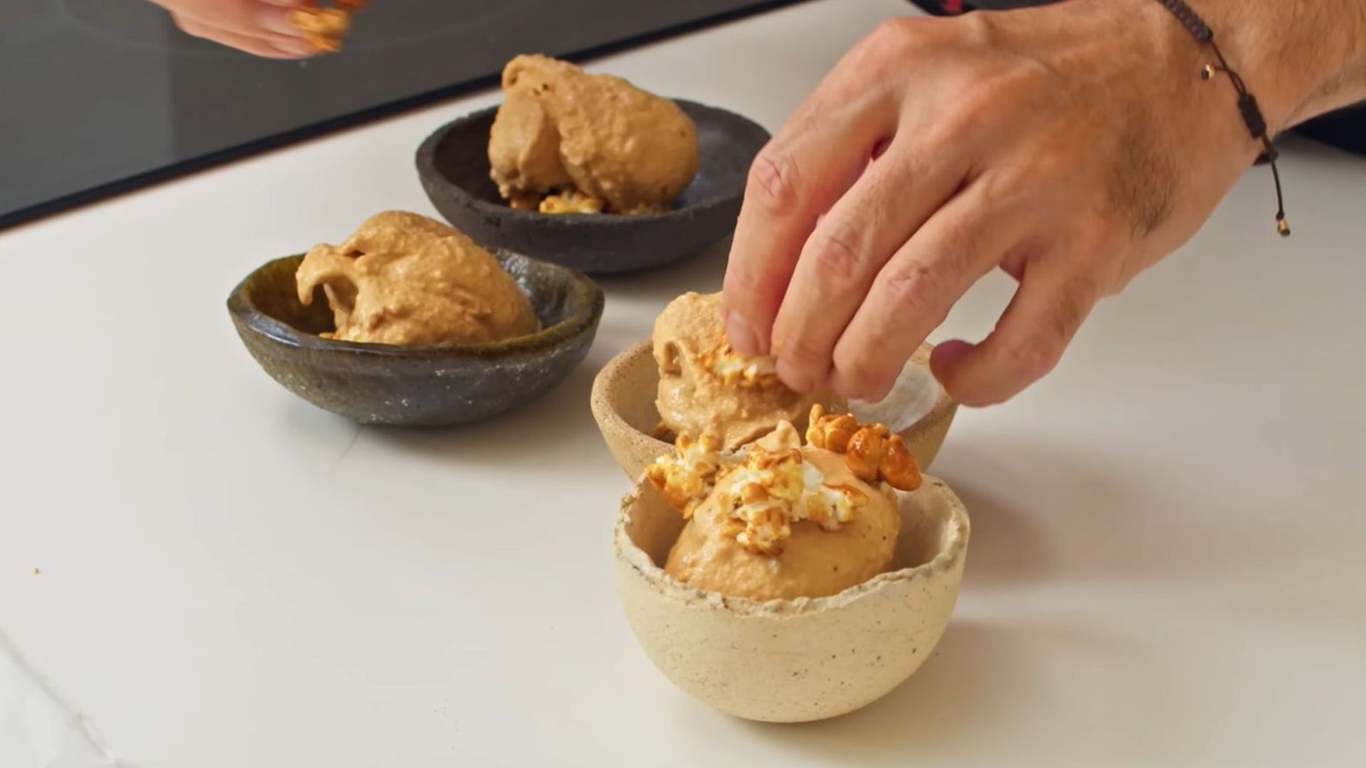 Jordi Roca ha conseguido hacer un helado de palomitas con dulce de leche y un toque crujiente perfecto para disfrutar en las tardes de invierno y manta