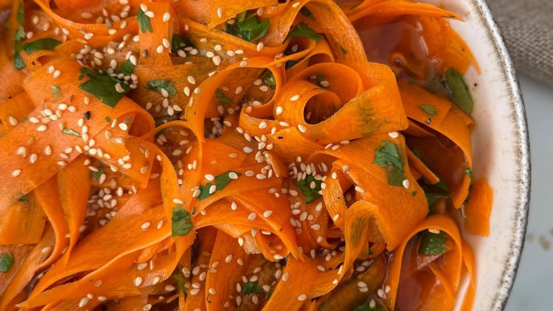 Que esta coreana de 63 años coma a menudo esta ensalada de zanahorias, científicamente se sostiene porque, además de estar deliciosa, la ayuda a mantenerse más joven y con la piel más bonita. La nutricionista Natalia Antar comenta que “la zanahoria contiene betacarotenos que se acumulan en la piel y protegen del daño solar”. Y eso es solo el principio porque, gracias a esa vitamina A, a sus minerales y antioxidantes, la zanahoria contribuye a evitar líneas de expresión y arrugas, mejora la luminosidad y la nutrición, ayuda a eliminar manchitas y equilibrar el tono de la piel. Y, para muchas, tras el verano es el truco más saludable para potenciar y prolongar el bronceado.