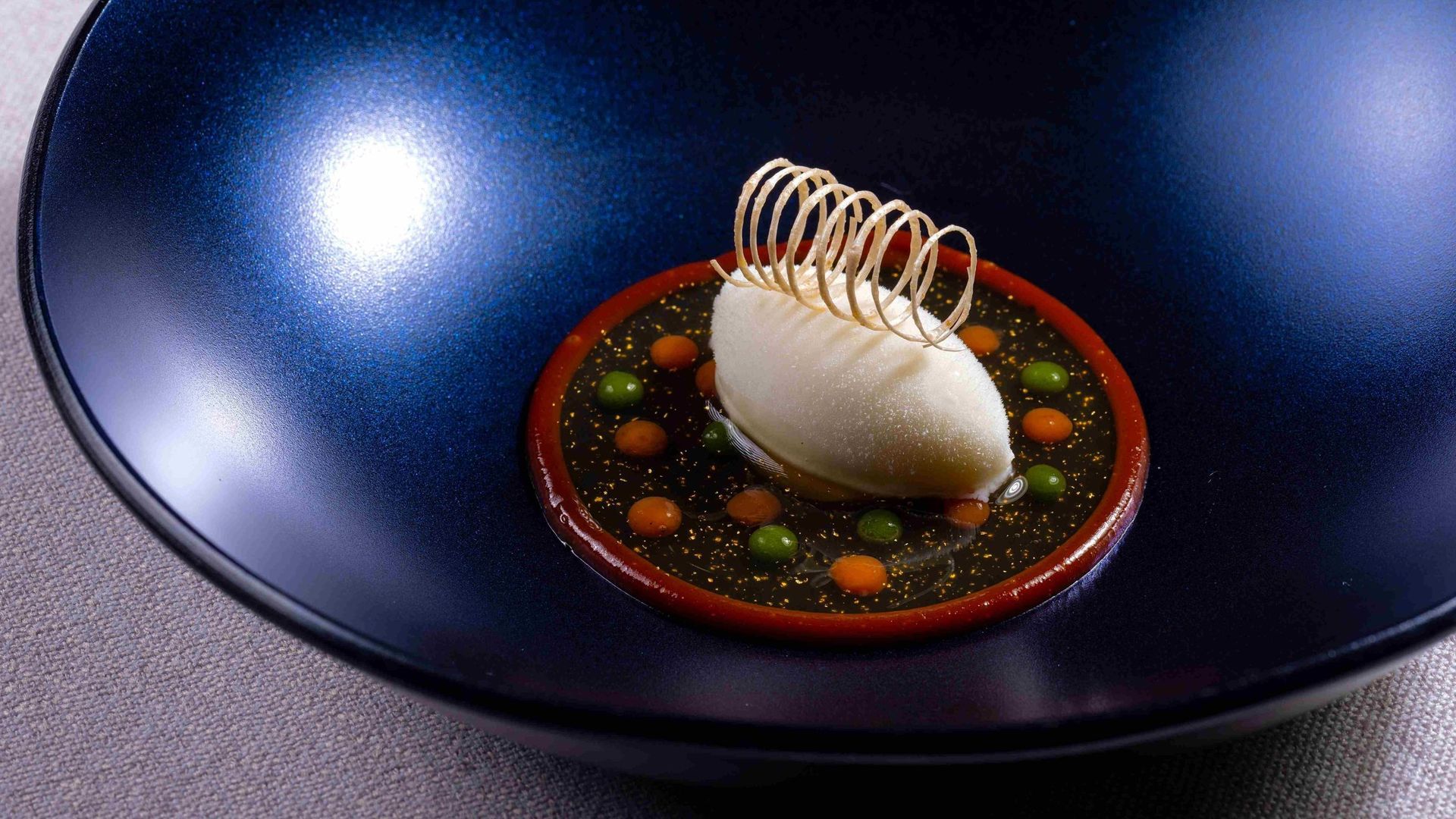 El restaurante de Pedro Subijana, Akelarre (calle Padre Ochoa 56. Igeldo), aguarda otro de los platos más valorados de 2025, el bogavante y kiskilla bajo una cubierta de arroz venere y sorbete de salpicón. Se trata de una reinterpretación de la ensalada de bogavante que es un auténtico juego de texturas entre cada uno de los ingredientes que componen el plato. “Un plato donde lo crujiente y lo cremoso, lo frío y lo caliente, conviven en armonía”, destaca la guía.