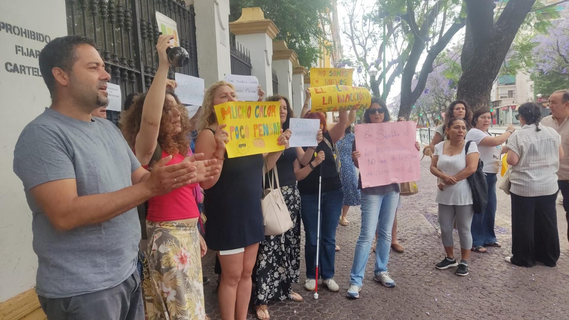 Con mensajes como “la letra con calor no entra”, las familias concentradas han exigido al Ayuntamiento de Sevilla y a la Junta de Andalucía que el centro escolar, con más de cien años de antigüedad, cuente con una infraestructura digna que garantice condiciones mínimas para el aprendizaje.