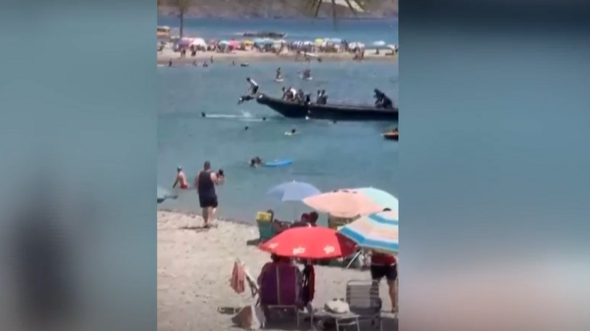 Diez inmigrantes, entre ellos un menor, llegan a una playa de Motril, Granada, en una embarcación rápida: los bañistas, atónitos