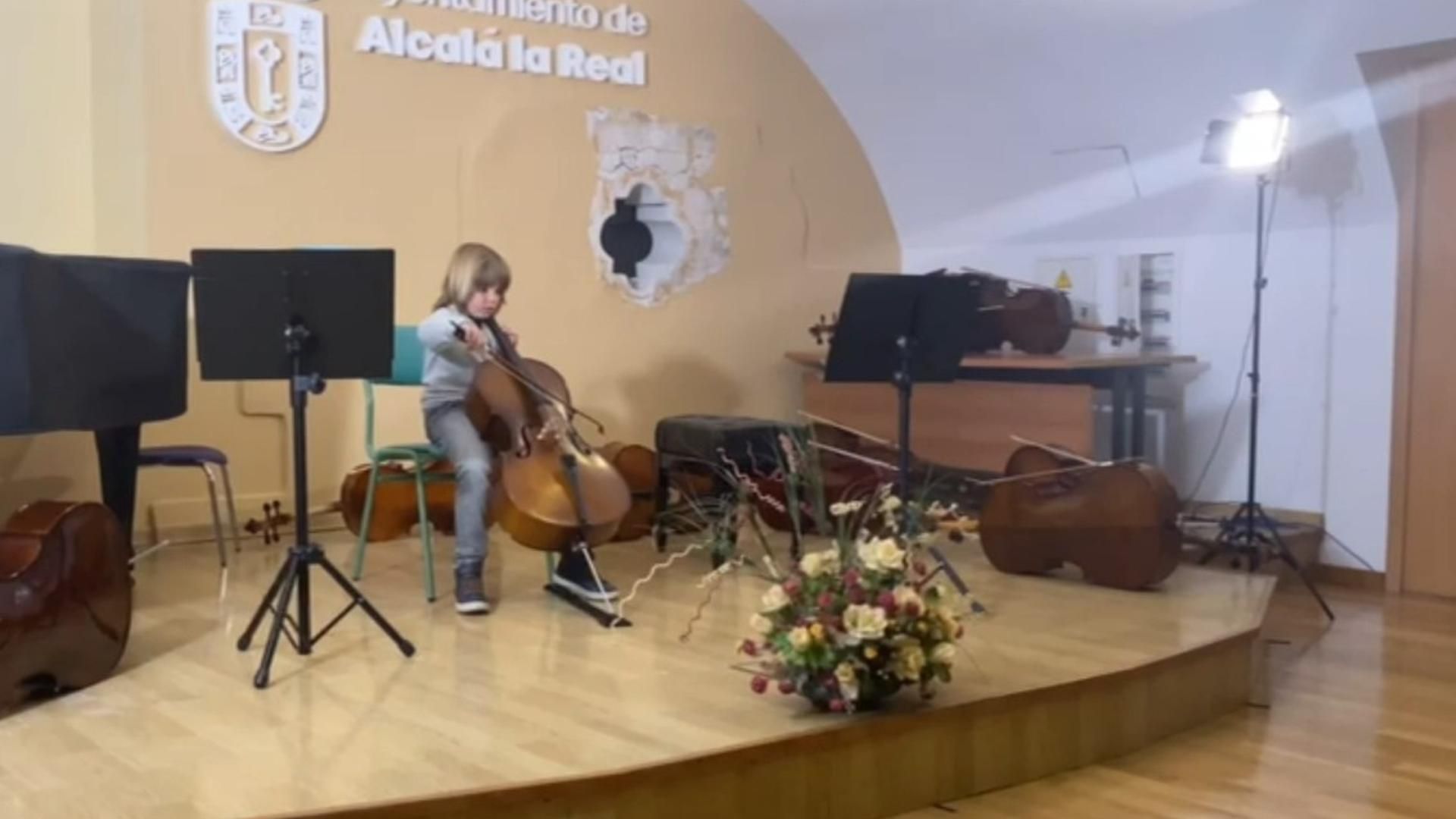 El pequeño Rubén tocando el violonchelo con solo cuatro años