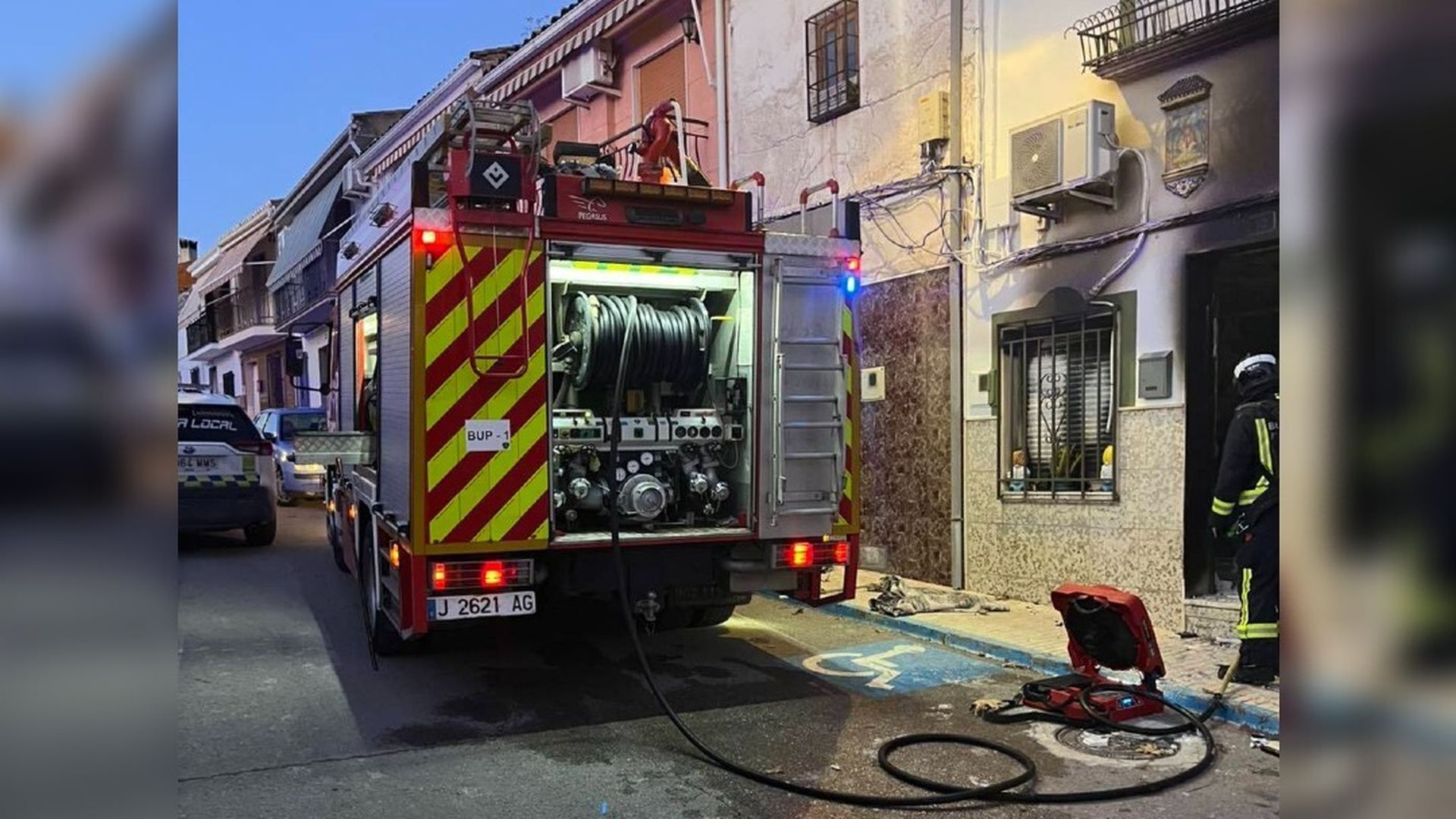 Los Bomberos extinguiendo el incendio de una vivienda de Alcaudete (Jaén). Policía Local de Alcaudete (Jaén)