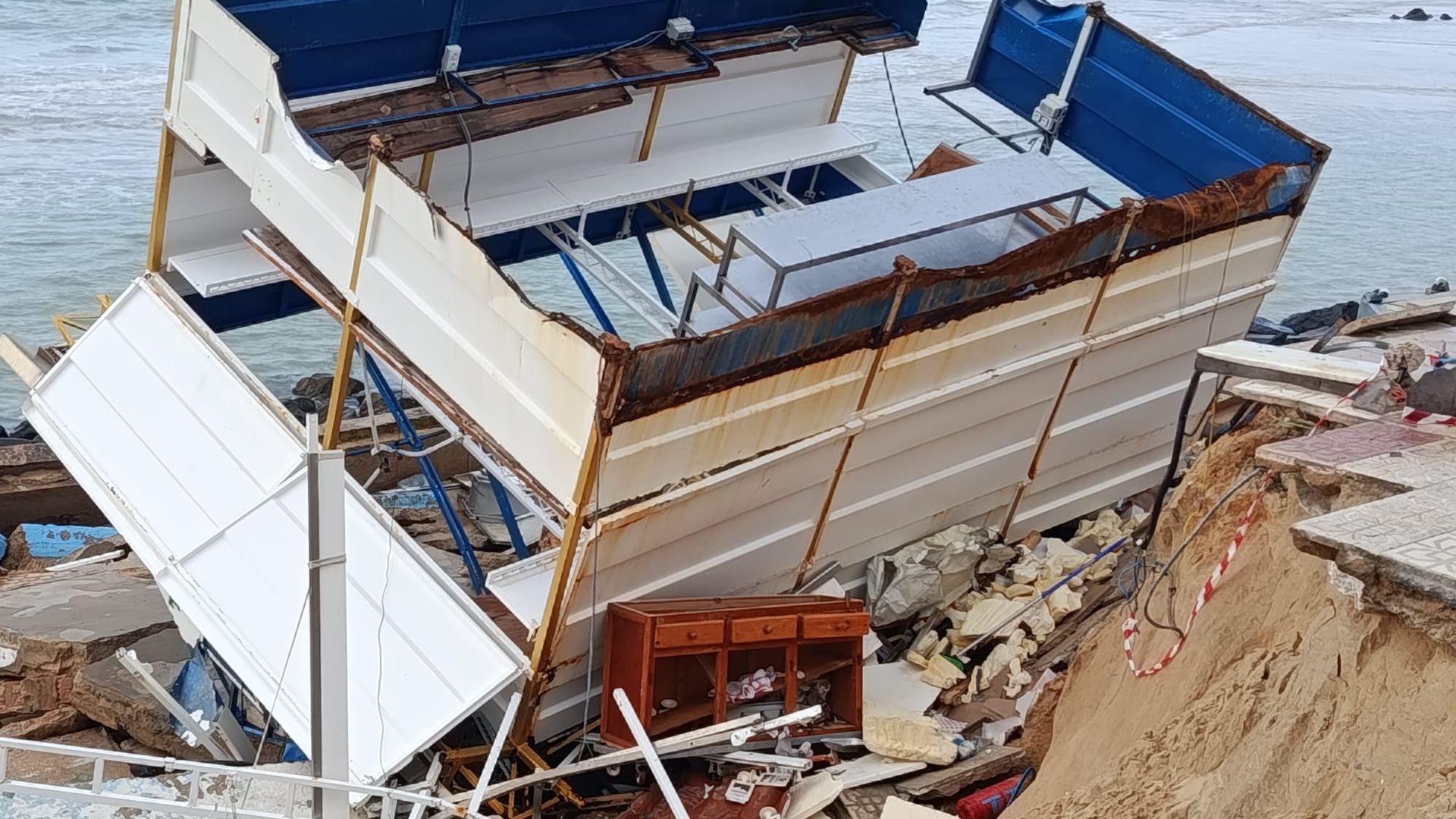 María Jiménez, propietaria del chiringuito La Sirena Dorada, habla con rabia, preocupación y agotamiento. Su establecimiento ha sido el primero en caer, literalmente engullido por la tierra y el mar. "Mi chiringuito es el primero que cayó, el que se ha visto en las imágenes como si la tierra se lo hubiera tragado", cuenta. "Lo hemos perdido todo, el sustento de mi familia, el pan de mis hijos, es todo lo que tenía", relata.