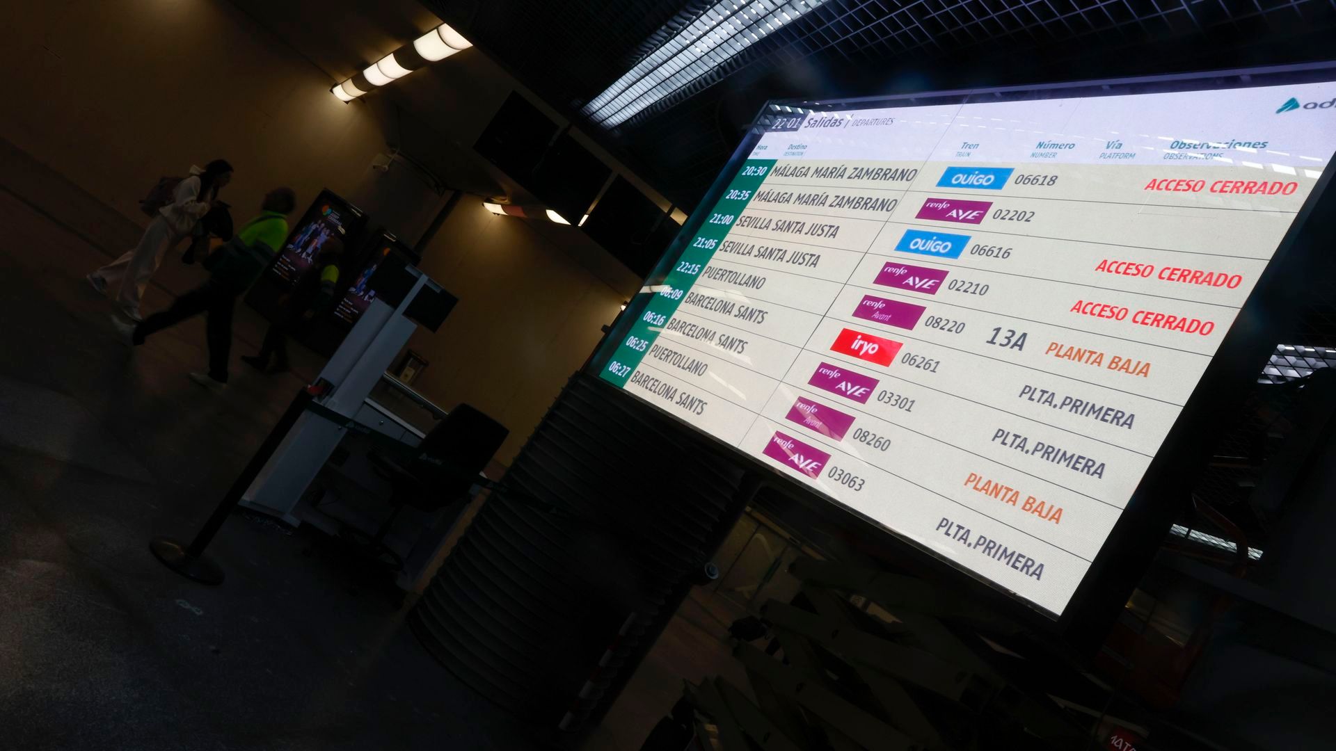 Vista de los paneles de salidas de trenes de la estación Puerta de Atocha en Madrid. EFE
