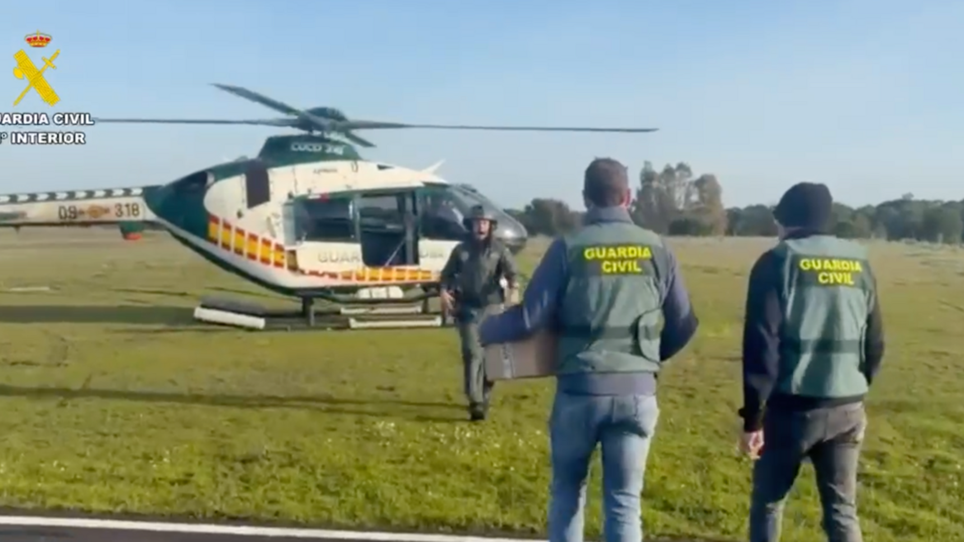 La Guardia Civil traslada en helicóptero las muestras de ADN de familiares directos de los fallecidos en el accidente de trenes ocurrido en Adamuz, Córdoba, de los puntos habilitados para su recogida en Huelva, Málaga y Sevilla para su análisis en los laboratorios del Servicio de Criminalística, ubicados en Madrid.