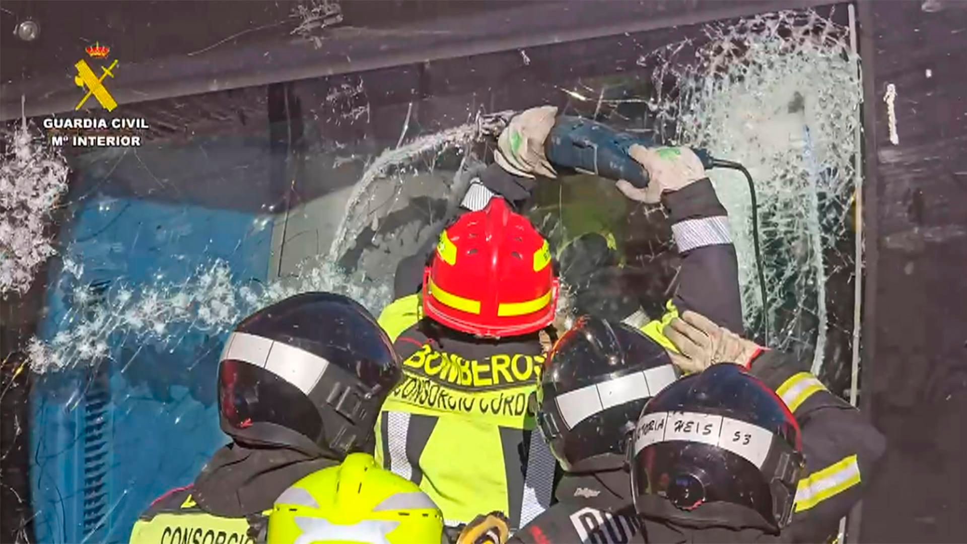 Los bomberos sacaron a los heridos tras el descarrilamiento del Iryo y el choque del Alvia en Adamuz.