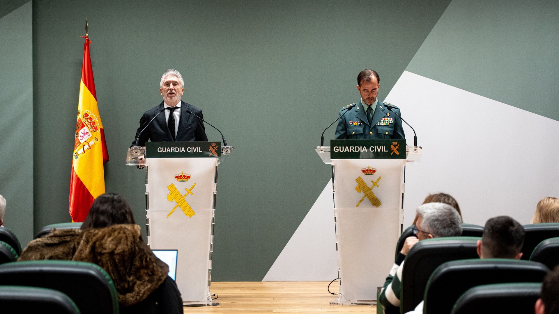 Fernando Grande-Marlaska, comparece en rueda de prensa, junto al coronel jefe del Servicio de Criminalística. Europa Press