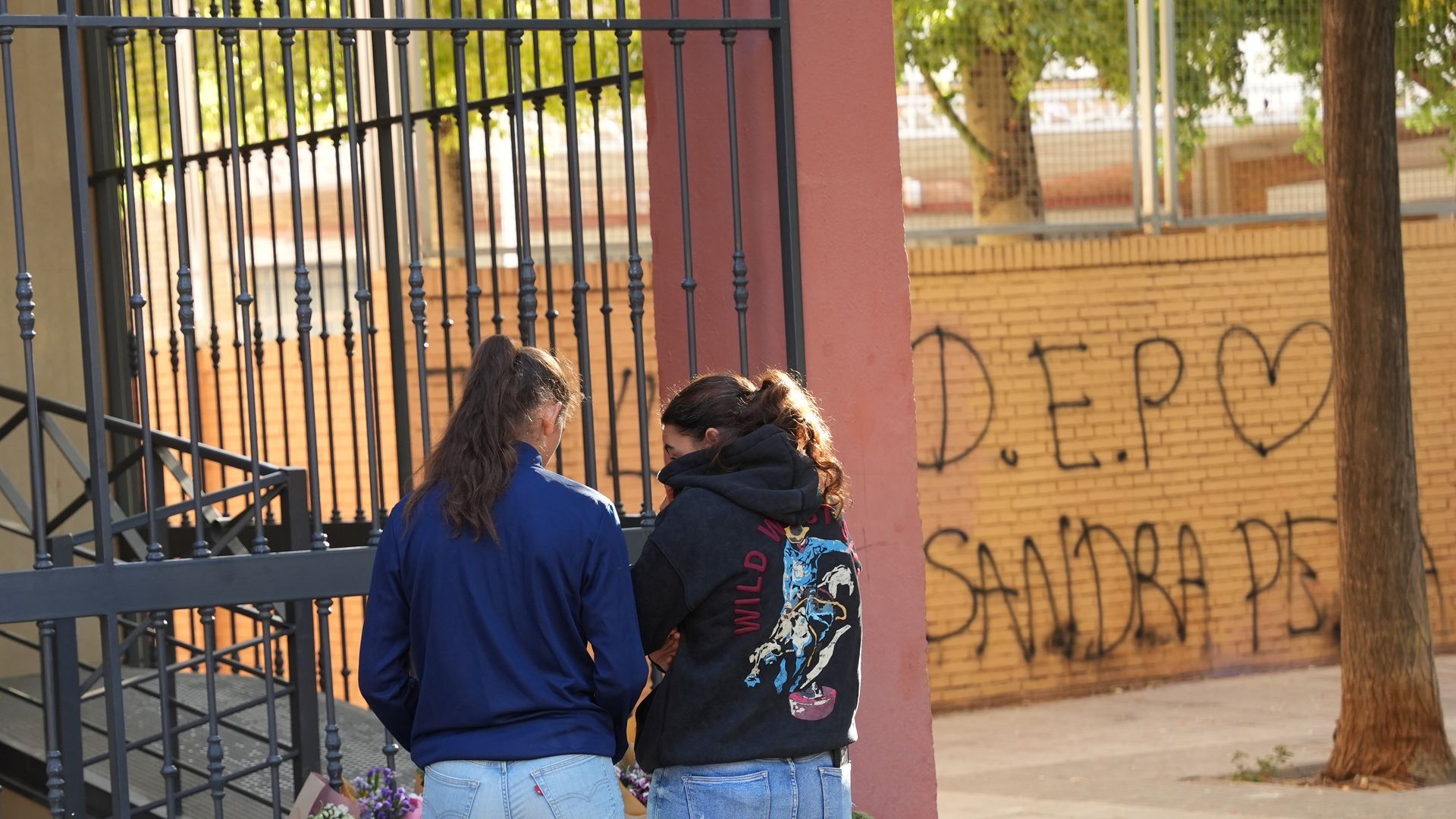 Imagen de un homenaje a Sandra Peña a las puertas del centro educativo en el que estudiaba. Europa Press