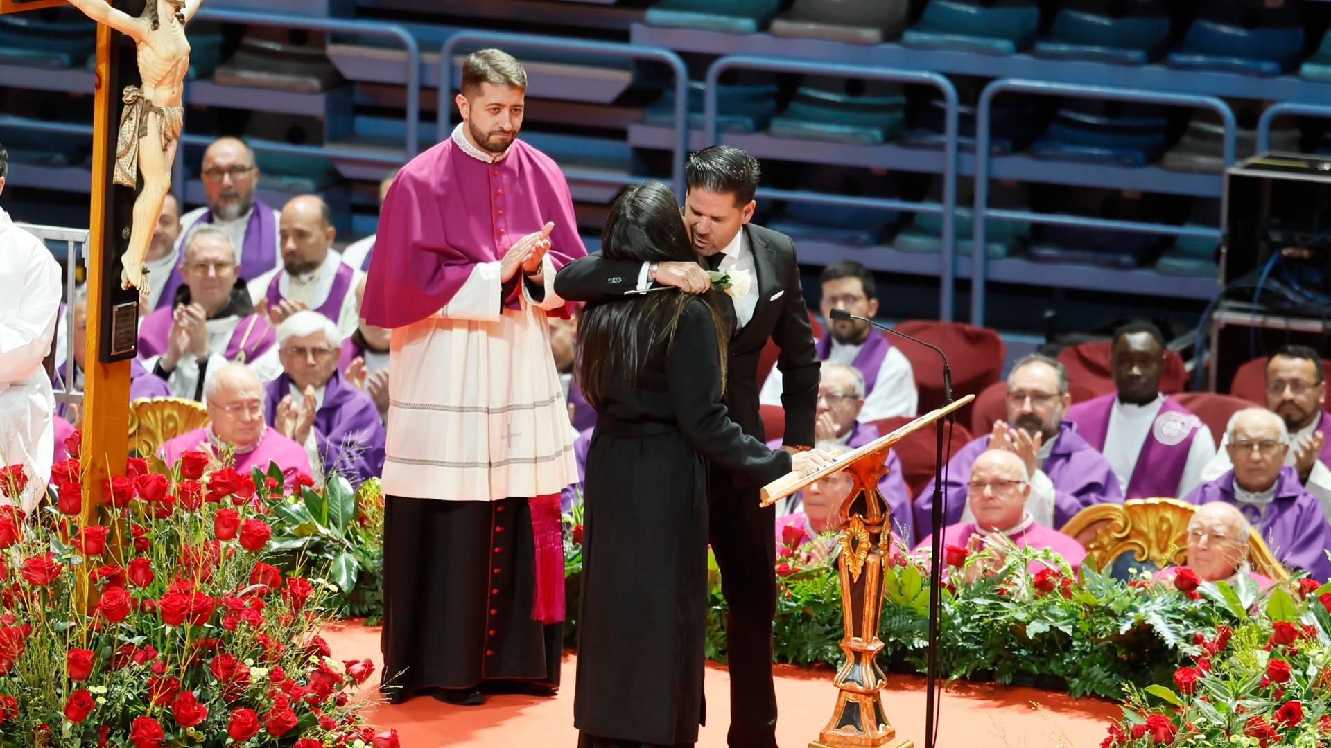 Hasta el altar se ha trasladado la imagen de la patrona de Huelva, la Virgen de la Cinta. Una ceremonia presidida por el obispo de Huelva, Santiago Gómez Sierra concelebrada por el presidente de la Conferencia Episcopal, Luis Argüello. Turno después para los familiares de las víctimas que consiguen la ovación de todo un auditorio en pie y también el consuelo de los reyes.