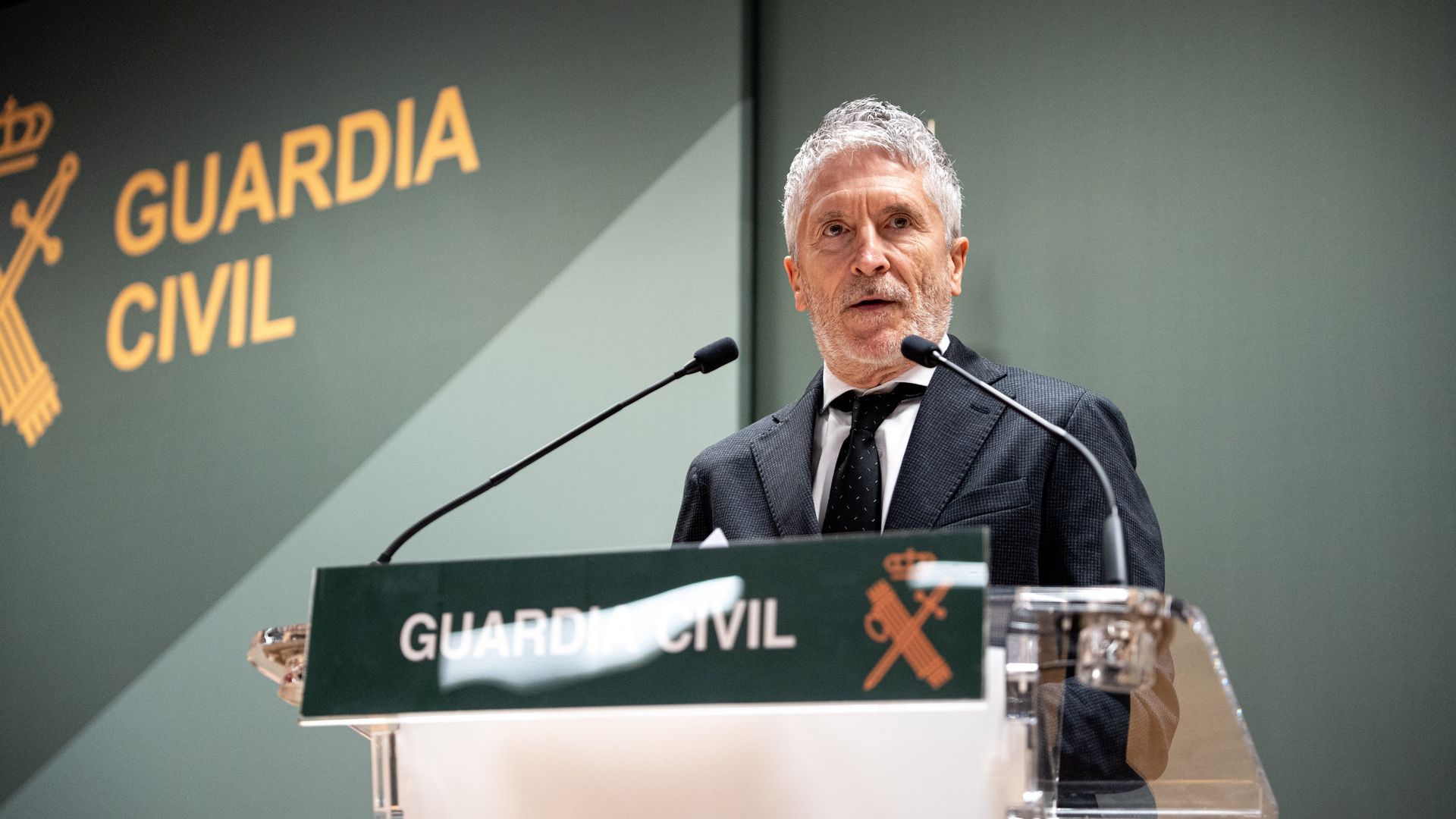 El ministro del Interior, Fernando Grande-Marlaska, comparece en rueda de prensa, en la sede de la Dirección General de la Guardia Civil. Europa Press