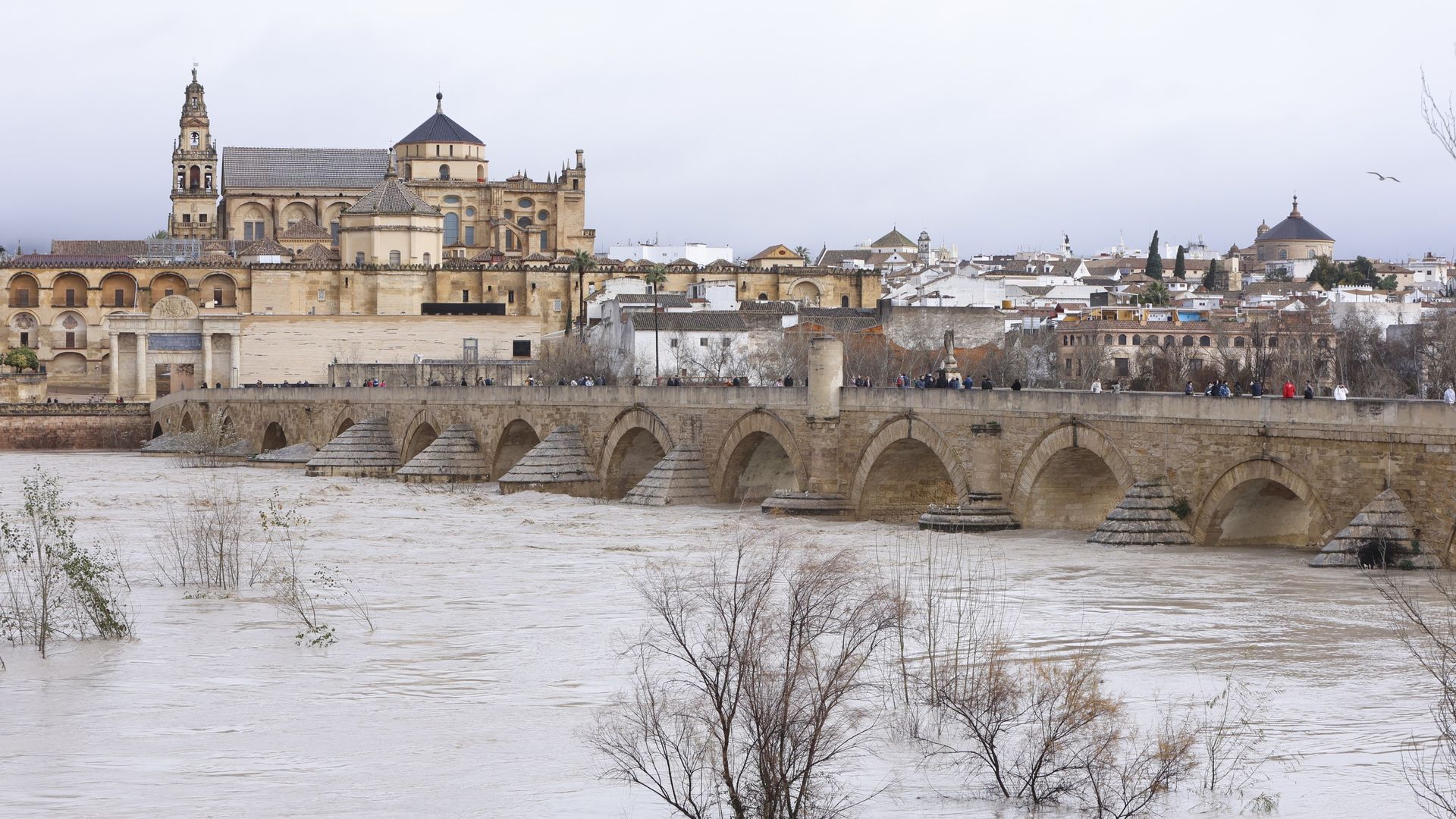 El río Guadalquivir, en su crecida, ha llevado a la Junta a cerrar el Puente Romano al tránsito peatonal.. ep