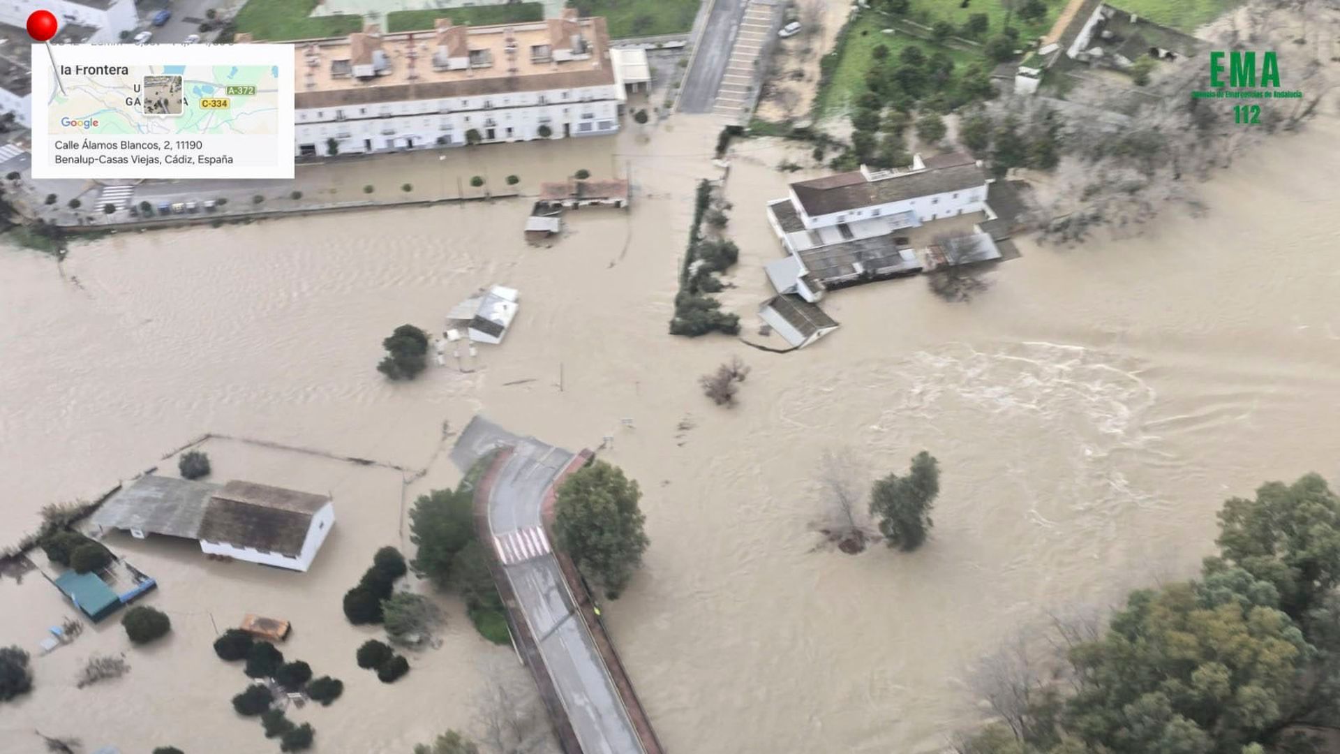 Imagen tomada con un dron que muestra inundaciones en Benalup-Casas Viejas (Cádiz). EFE