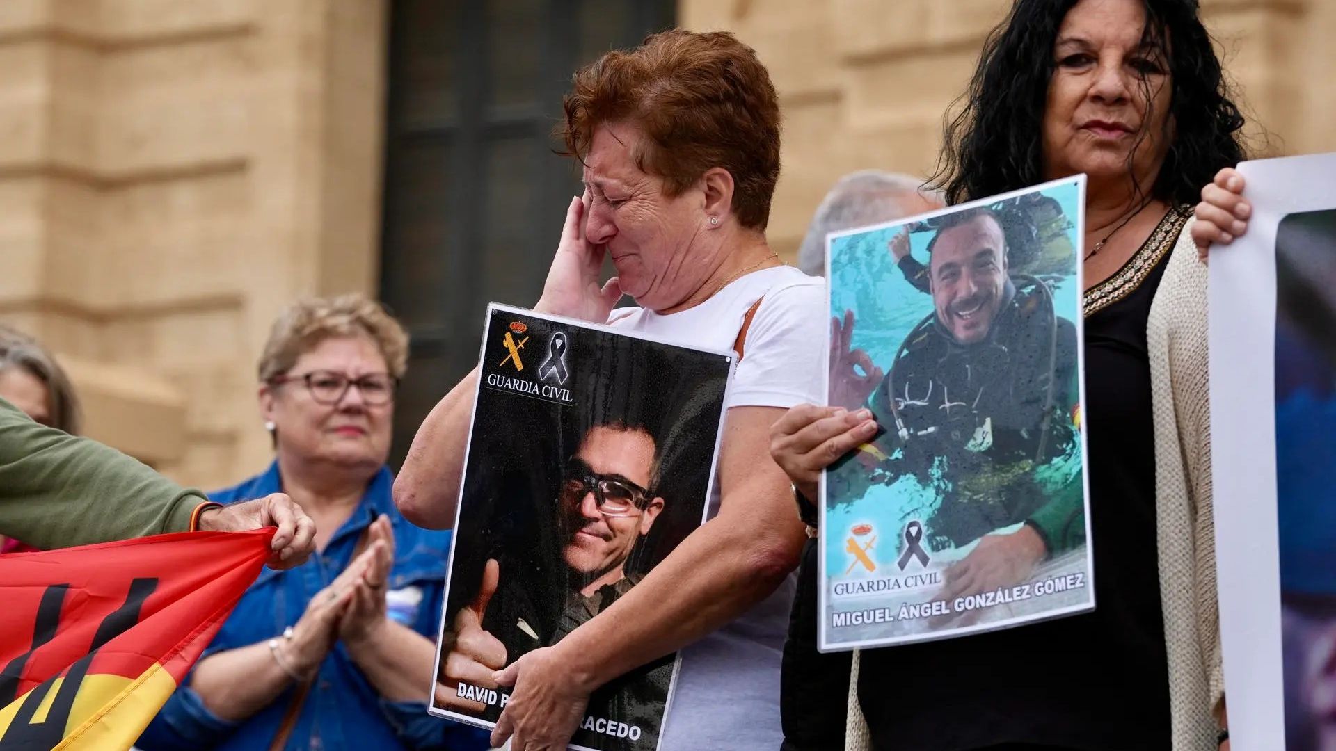 Familiares y amigos de Miguel Angel González y David Pérez, los dos guardias civiles muertos en Barbate (Cádiz)