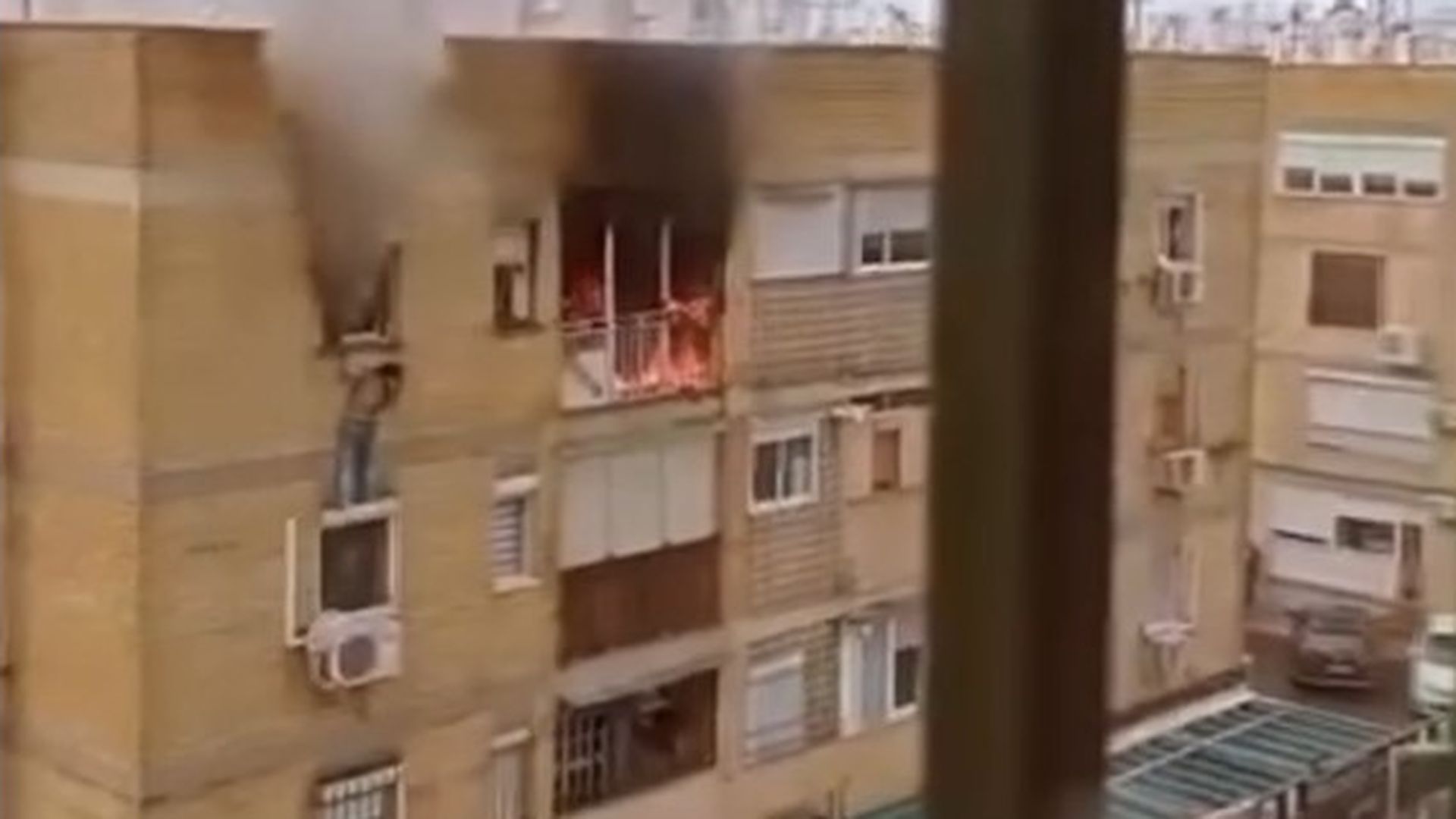 Una mujer salva 'in extremis' a su vecina que cayó desde una ventana cuando huía de las llamas en Sevilla