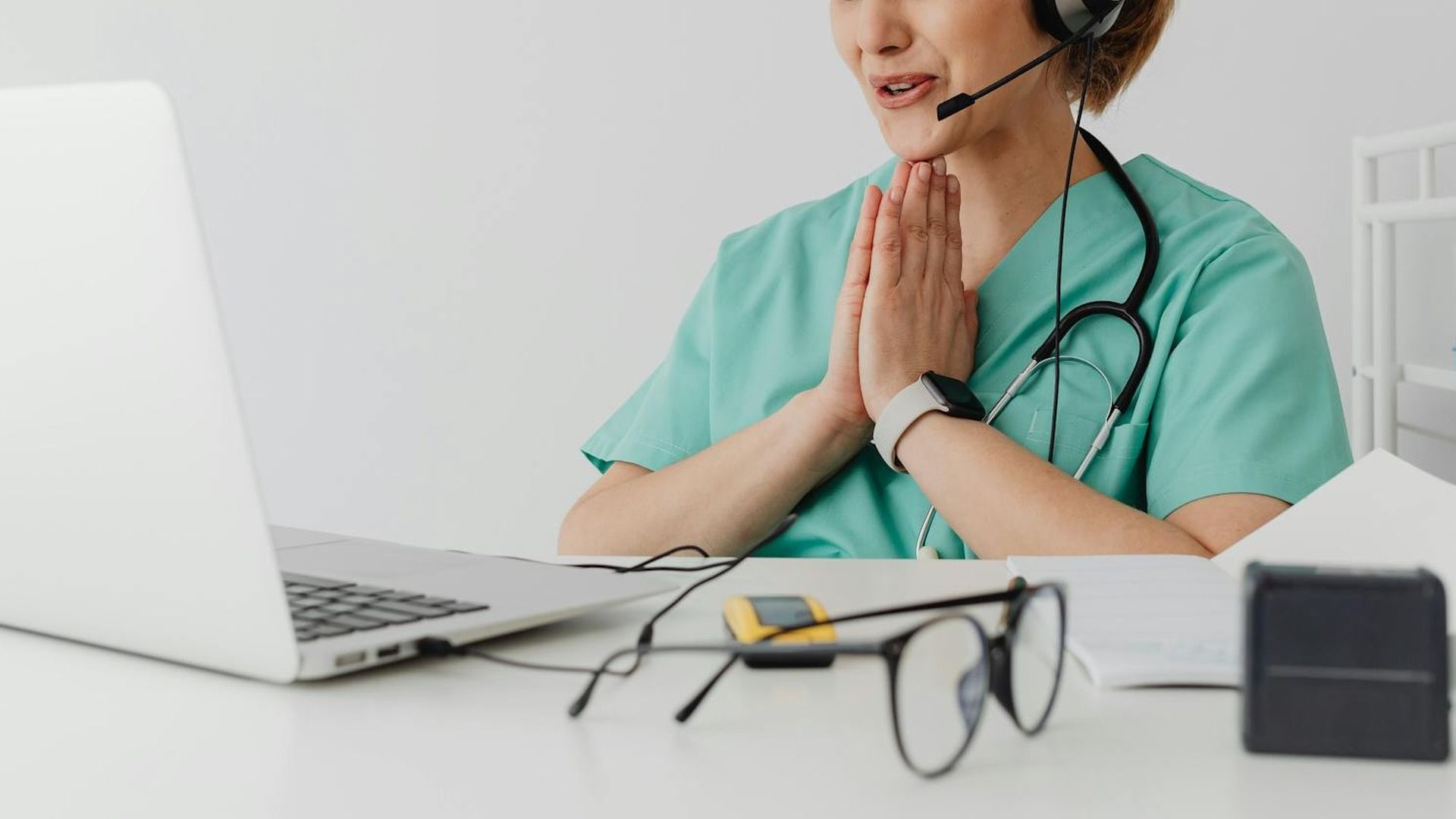Médico realizando una teleconsulta con su portátil