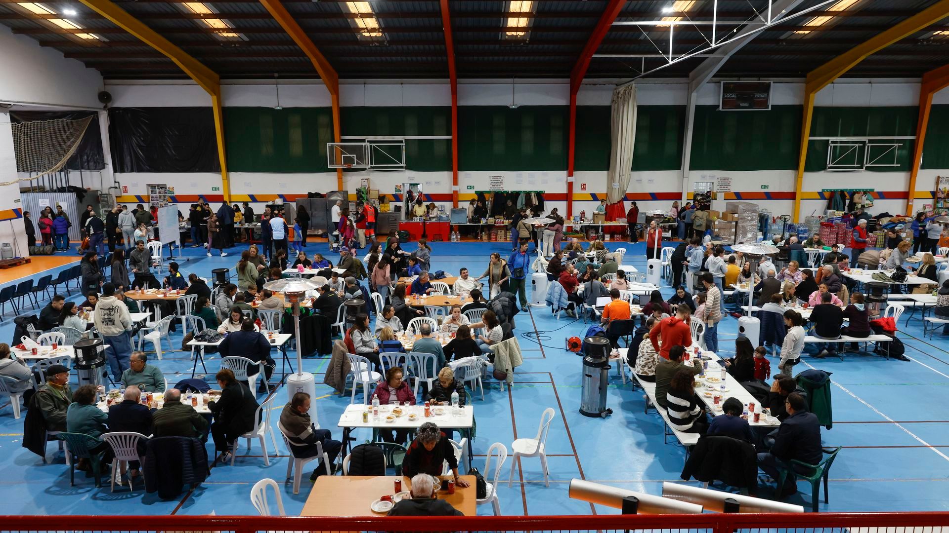 Desalojados de Grazalema y Benaoján en el centro deportivo 'El Fuerte' en Ronda, Málaga. EFE