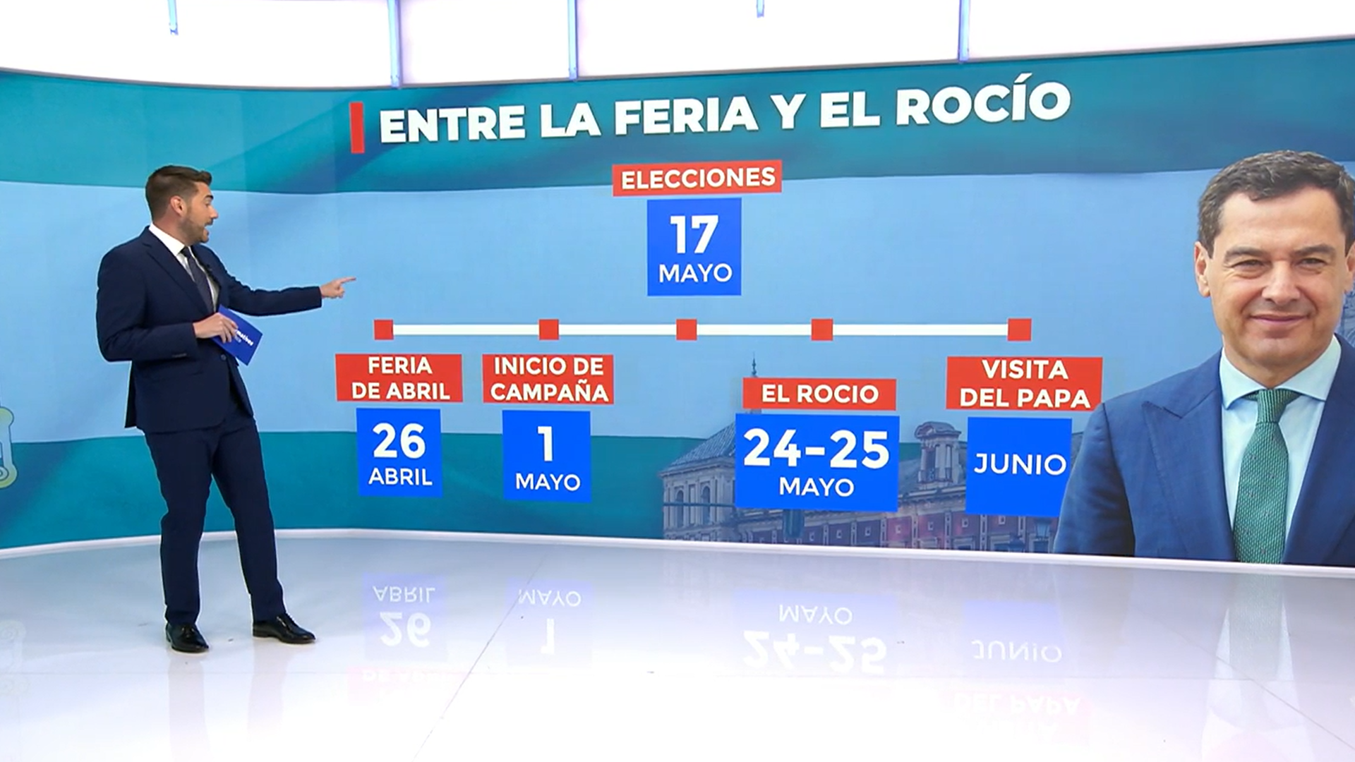 En concreto, la cita con las urnas se sitúa justo después de la Feria de Abril de Sevilla, que finaliza el 26 de abril, y antes de la celebración de la romería del Rocío, cuya madrugada más multitudinaria tendrá lugar entre el 24 y el 25 de mayo. También se ha tenido en cuenta la visita del Papa a España prevista para la primera semana de junio.