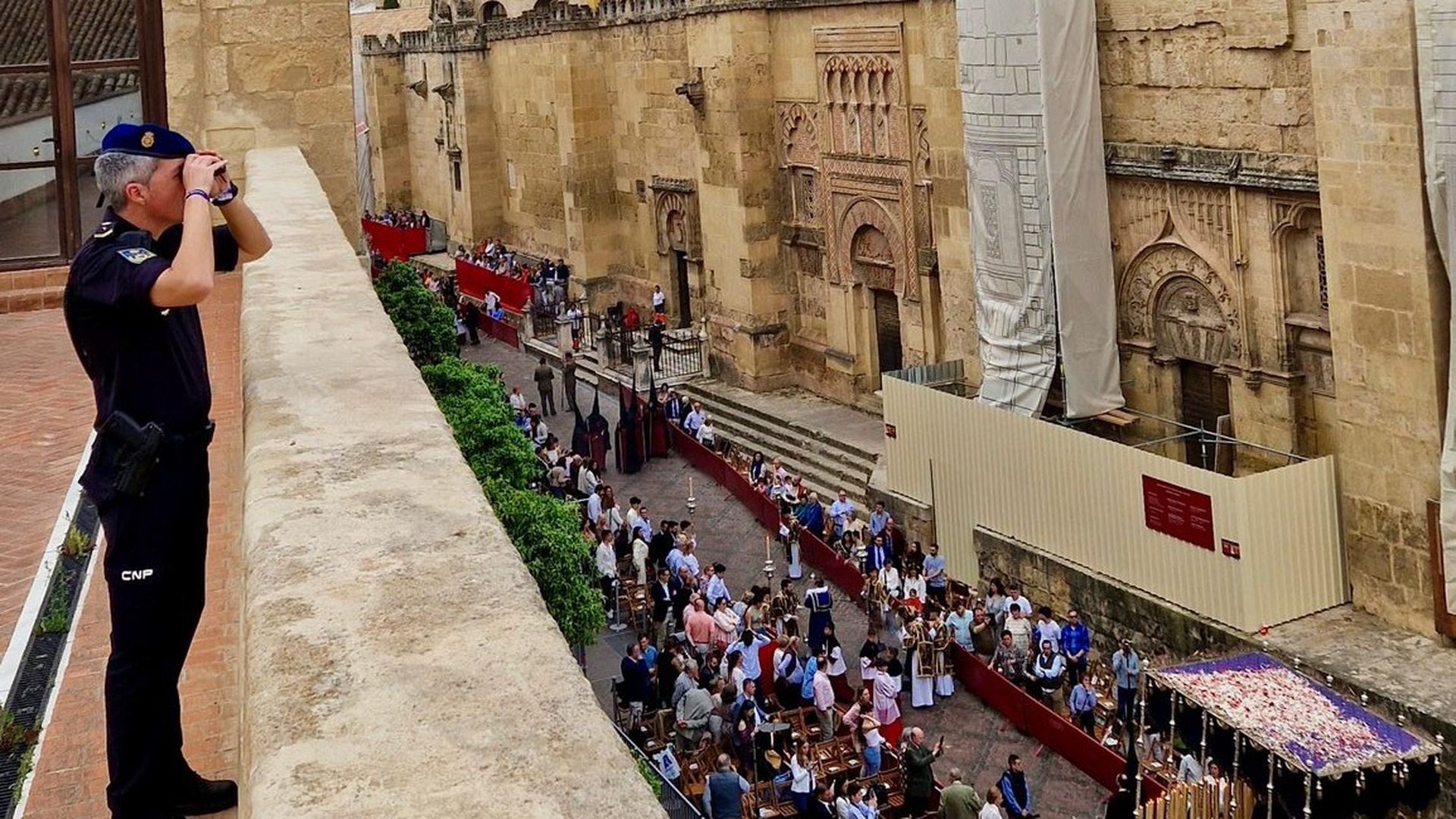 Un hombre sufre una parada cardiorrespiratoria en una procesión en el entorno de la Mezquita-Catedral de Córdoba: la ambulancia rompió una rampa para atenderle