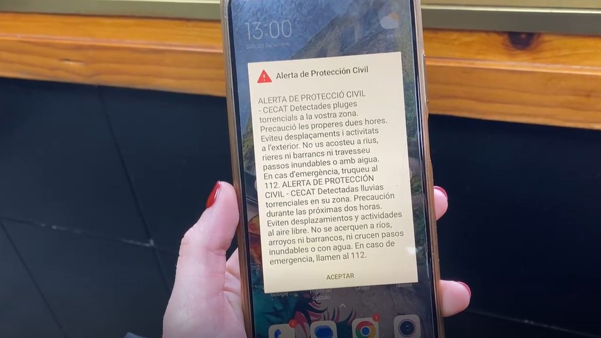 "Detectadas lluvias torrenciales en su zona. Precaución durante las próximas dos horas. Eviten desplazamientos y actividades al aire libre. No se acerquen a ríos, arroyos ni barrancos, ni crucen pasos inundables o con agua. En caso de emergencia, llame al 112", alertan desde Protección Civil.