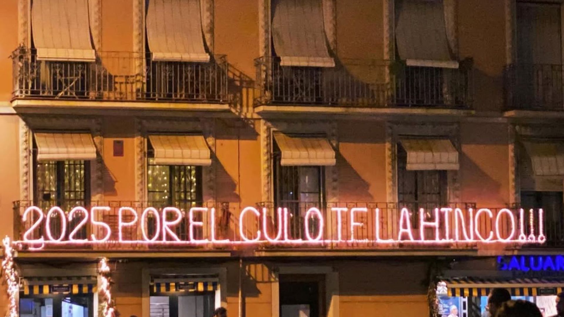 El balcón de un vecino de la Barceloneta se ha convertido en un auténtico fenómeno de masas por Navidad en la capital catalana, donde David lleva 18 años colgando una frase en su fachada para felicitar el año nuevo. Una tradición que arranca sonrisas y, depende del mensaje, hasta asombro como ocurrió el año pasado con '2025, por el culo te la hinco': "Sabía que iba a causar más furor que las anteriores. Soy muy de la broma, siempre estoy con las puntillitas rimando las frases, y esta la tenía que poner sí o sí. Además, la gente ya lo estaba esperando y claro que me atreví".