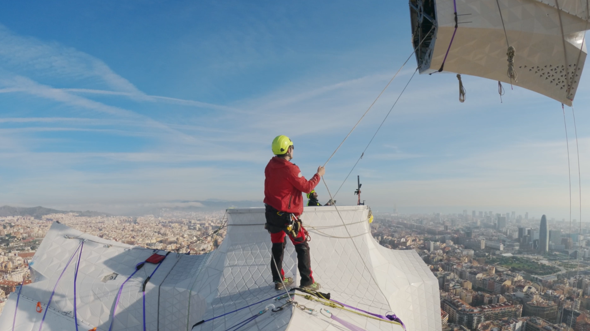 La instalación de los brazos de la Torre de Jesús. Sagrada Família