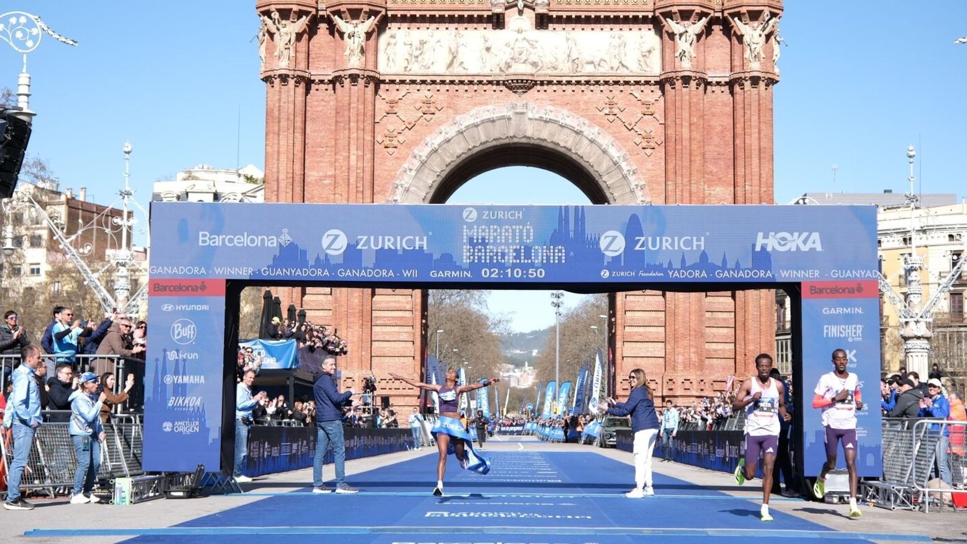 Corrió durante 35 kilómetros a ritmo de récord mundial y pulverizó la anterior plusmarca del circuito barcelonés en nueve minutos. La keniana Joan Jepkosgei finalizó en segunda posición con una marca de 2:18:42.